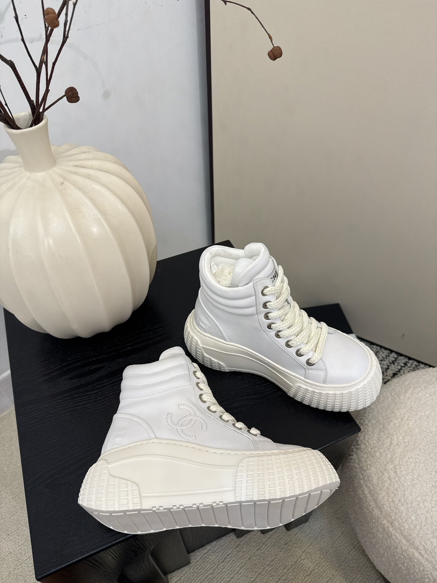 25 Thick soled mid top casual shoes(WHITE/NAVY/BLACK)