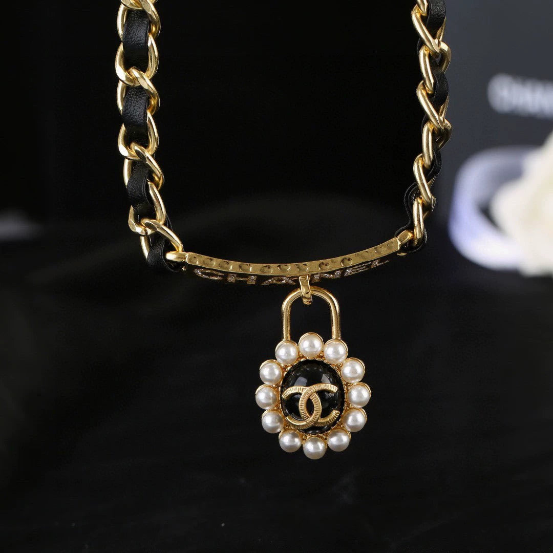 Gold chain+black lambskin, pearl+double C logo embellishment, exquisite workmanship, perfect attention to detail!