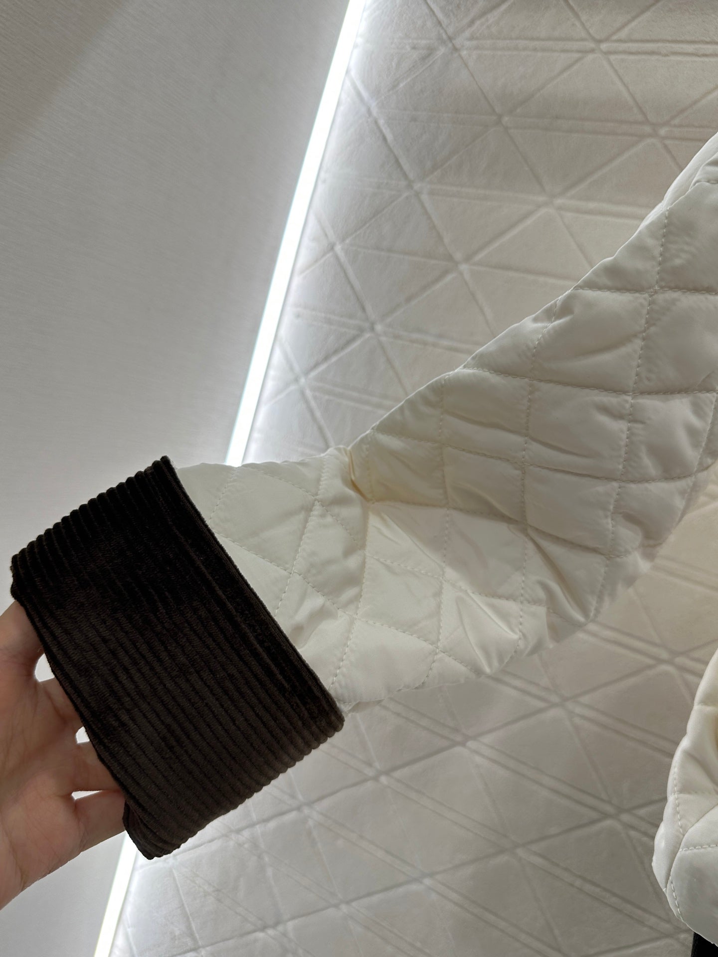 Corduroy collar diamond patterned cotton jacket