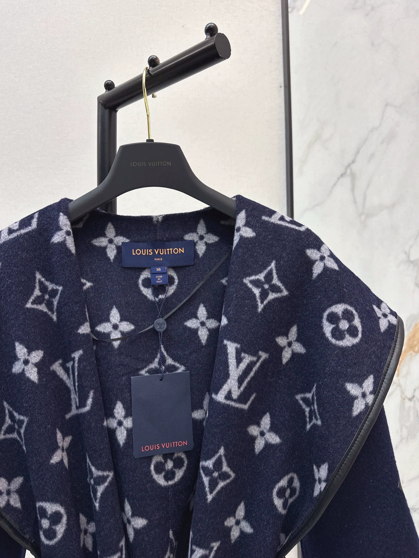 Using luxurious double-sided wool fabric, one side showcases a simple and elegant style, while the other side is fully covered with the same color scheme pattern. The wrapped silhouette and wide hood complement each other, creating a fun casual belt that achieves a waist cinching design with pure handmade craftsmanship