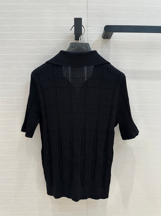 Lace Collar Polo Shirt with Tiered Skirt Set