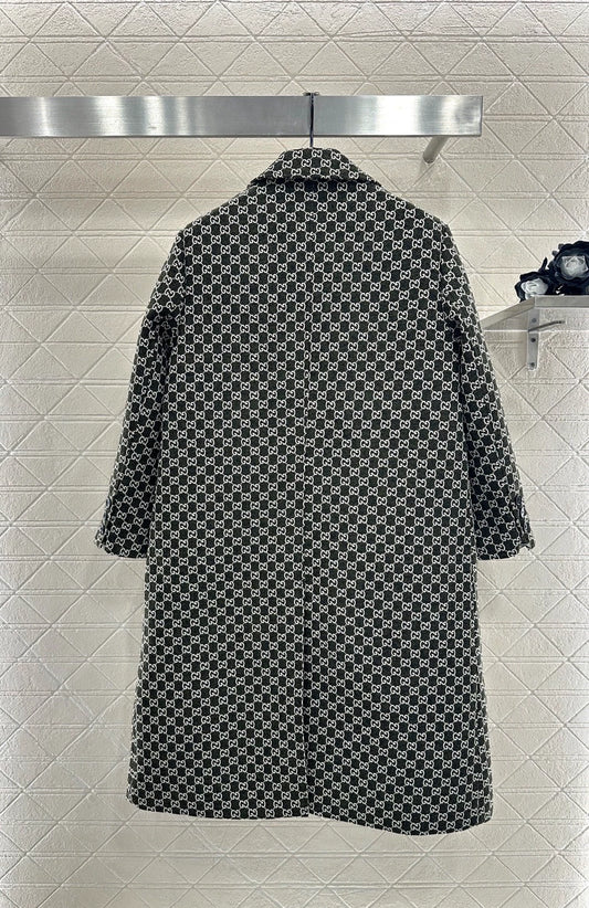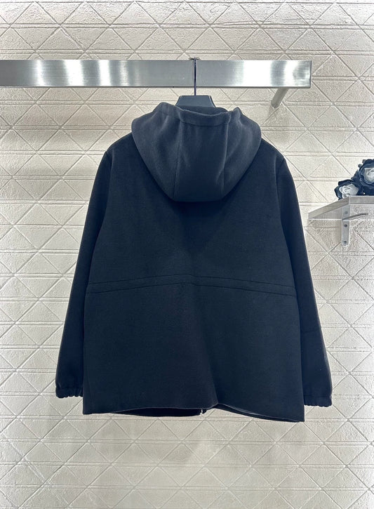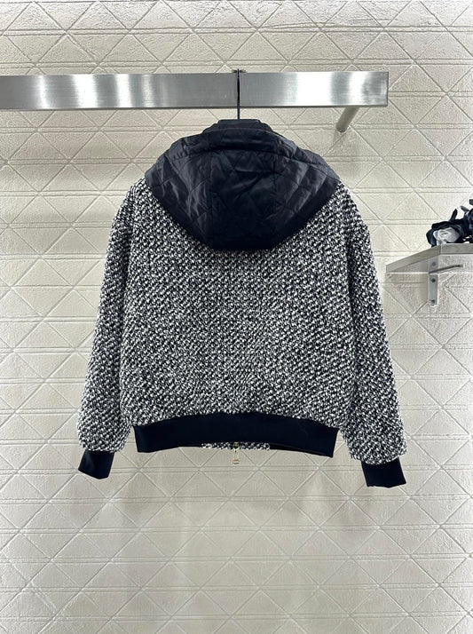 Hooded Jacquard Drawstring Waist Cotton Jacket