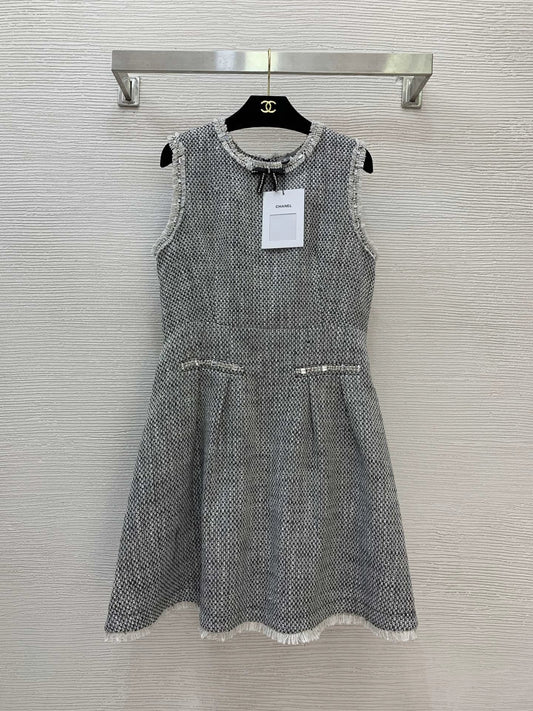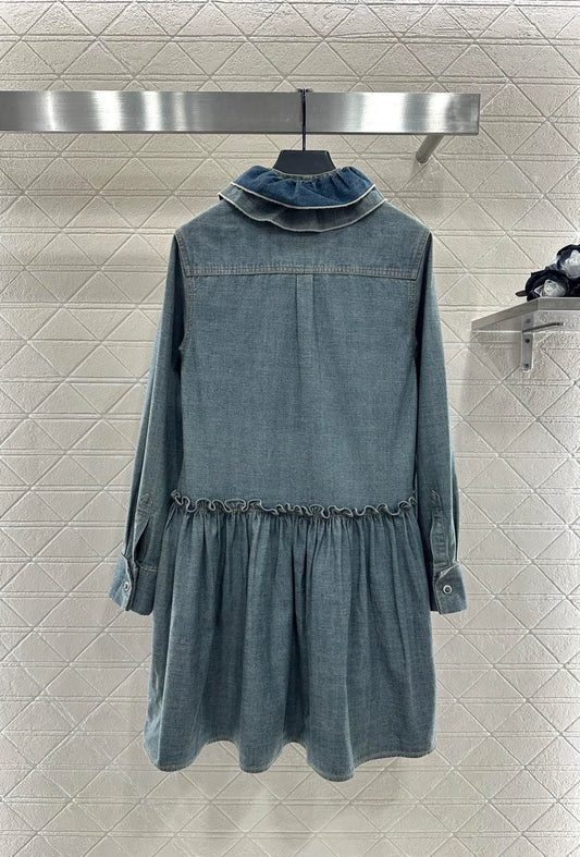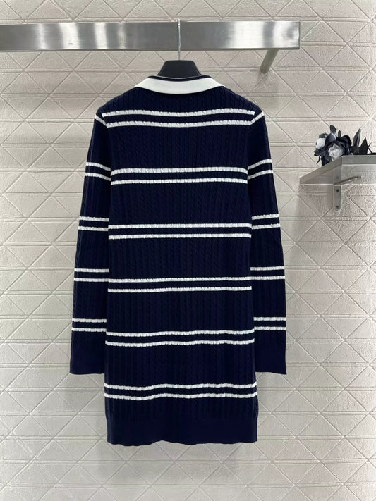 25fw Hook flower contrasting lapel long sleeved knitted dress