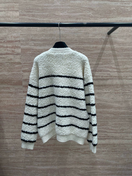Striped logo round neck hairy long sleeved shirt