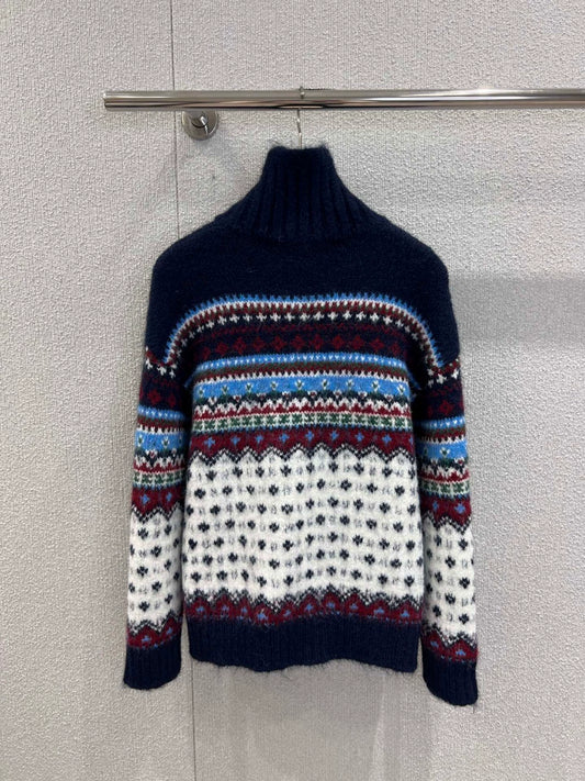 Ethnic style high necked knitted sweater