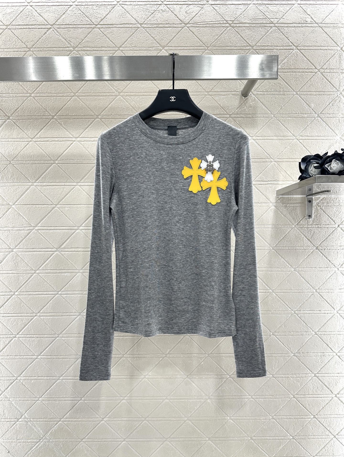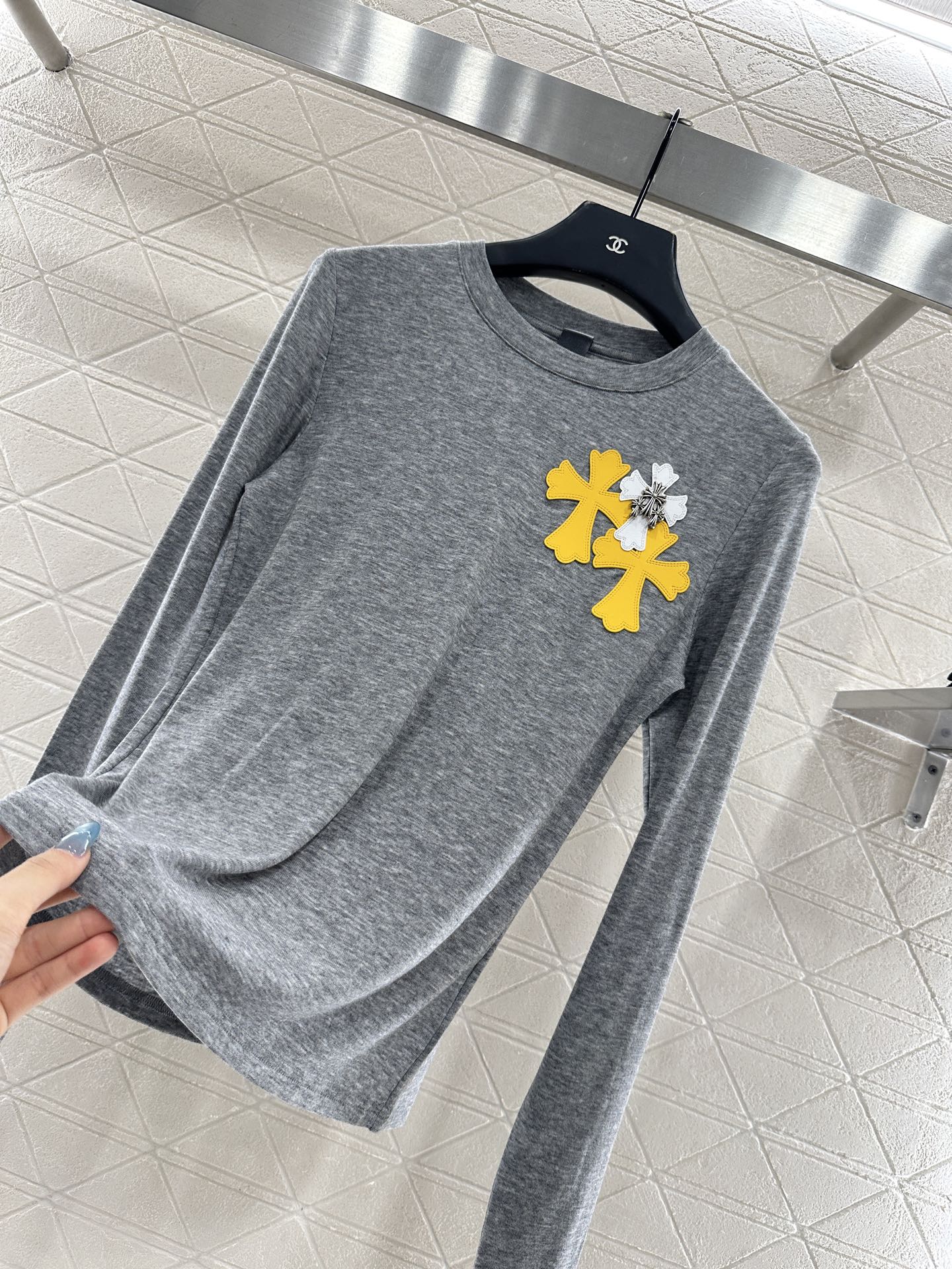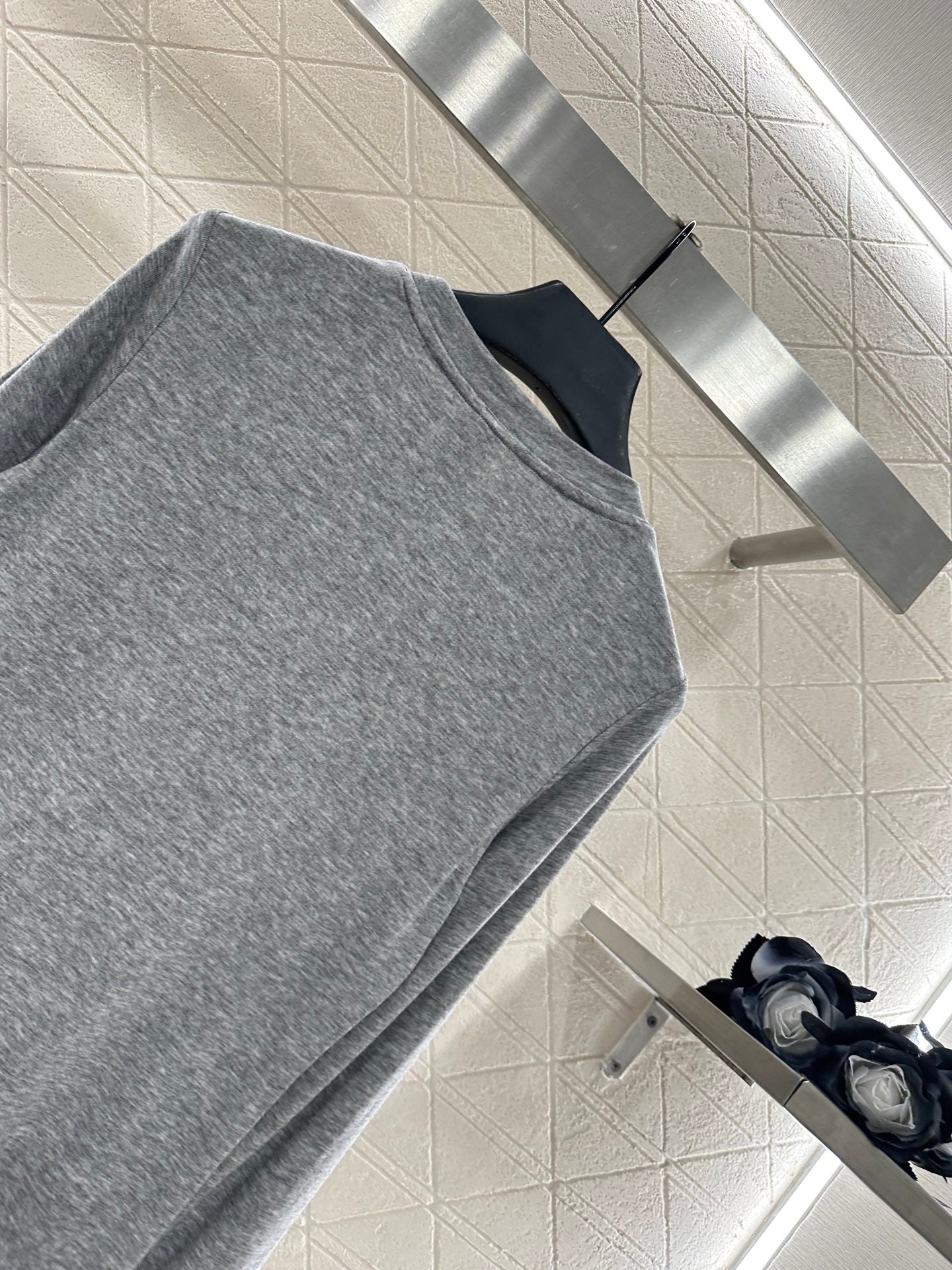 Tencel wool material, comfortable texture, full elasticity, slim fit round neck base cutting, three-dimensional contrasting cross totem logo embellished on one side of the chest, highlighting the brand style, elastic material, close fitting and comfortable slimming, visually narrowed and elongated, slim fit and slimming, fashionable and colorful when worn alone and worn internally
