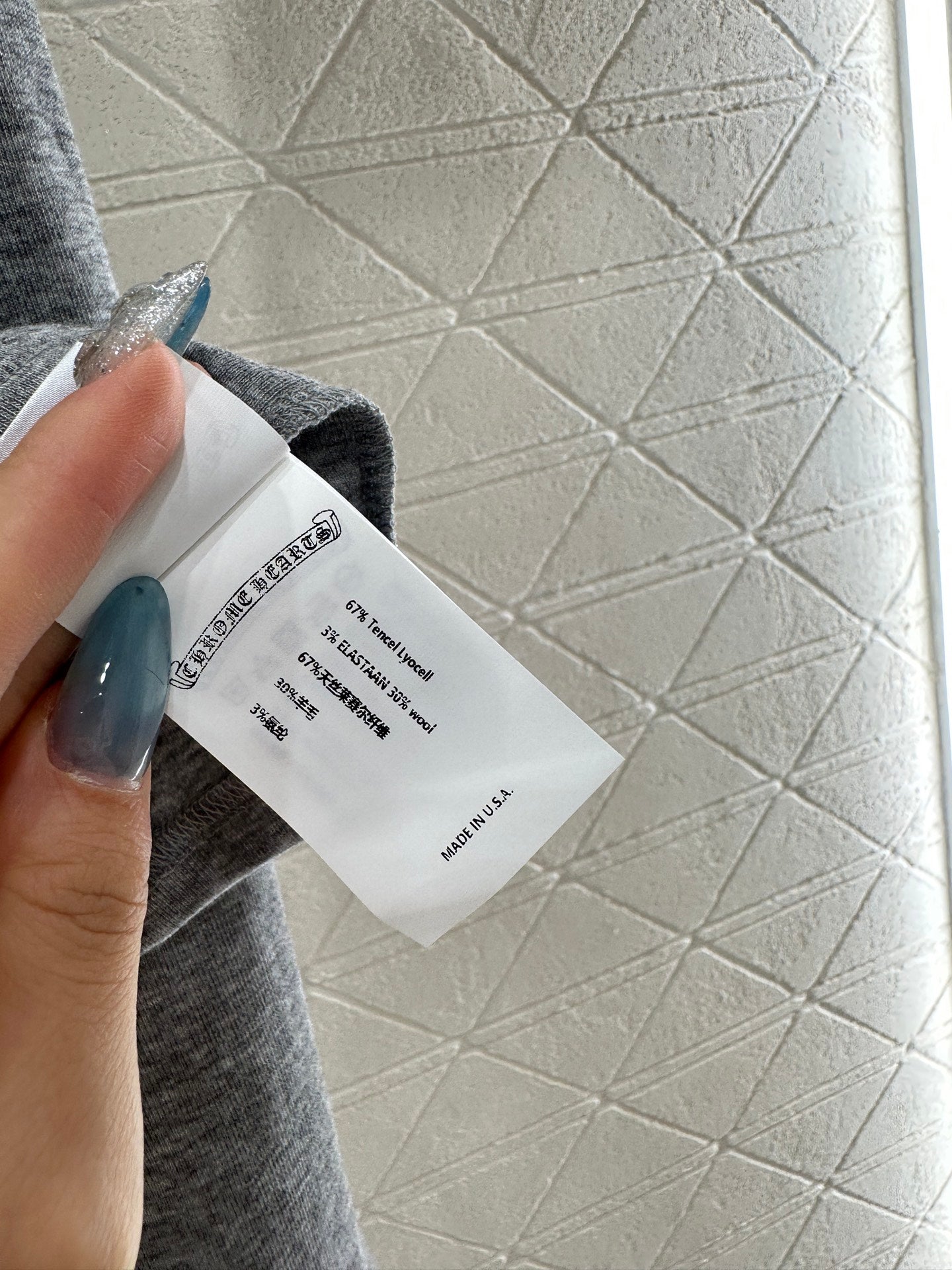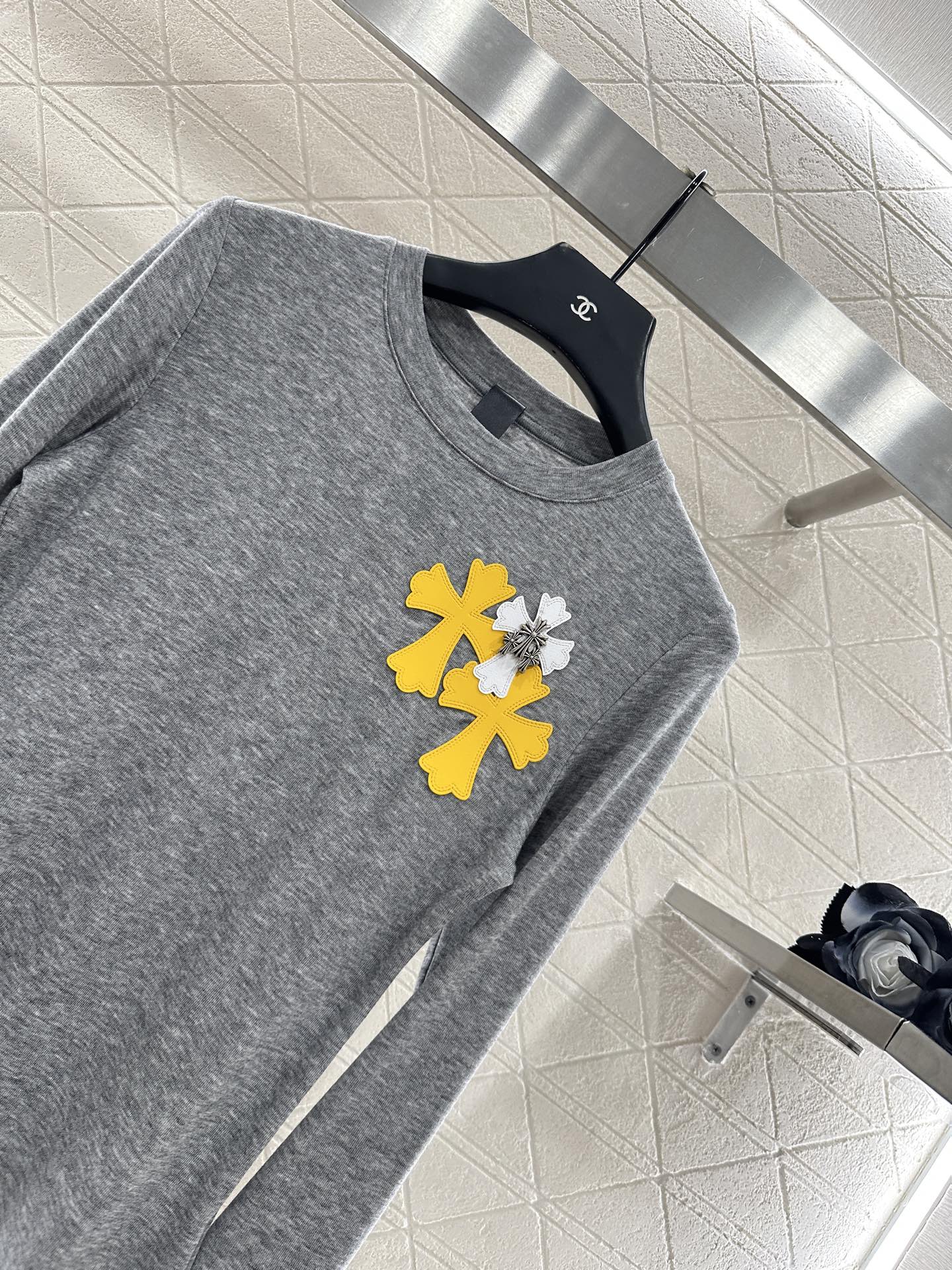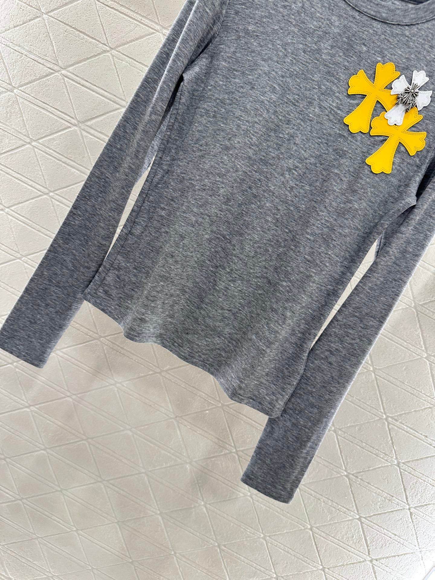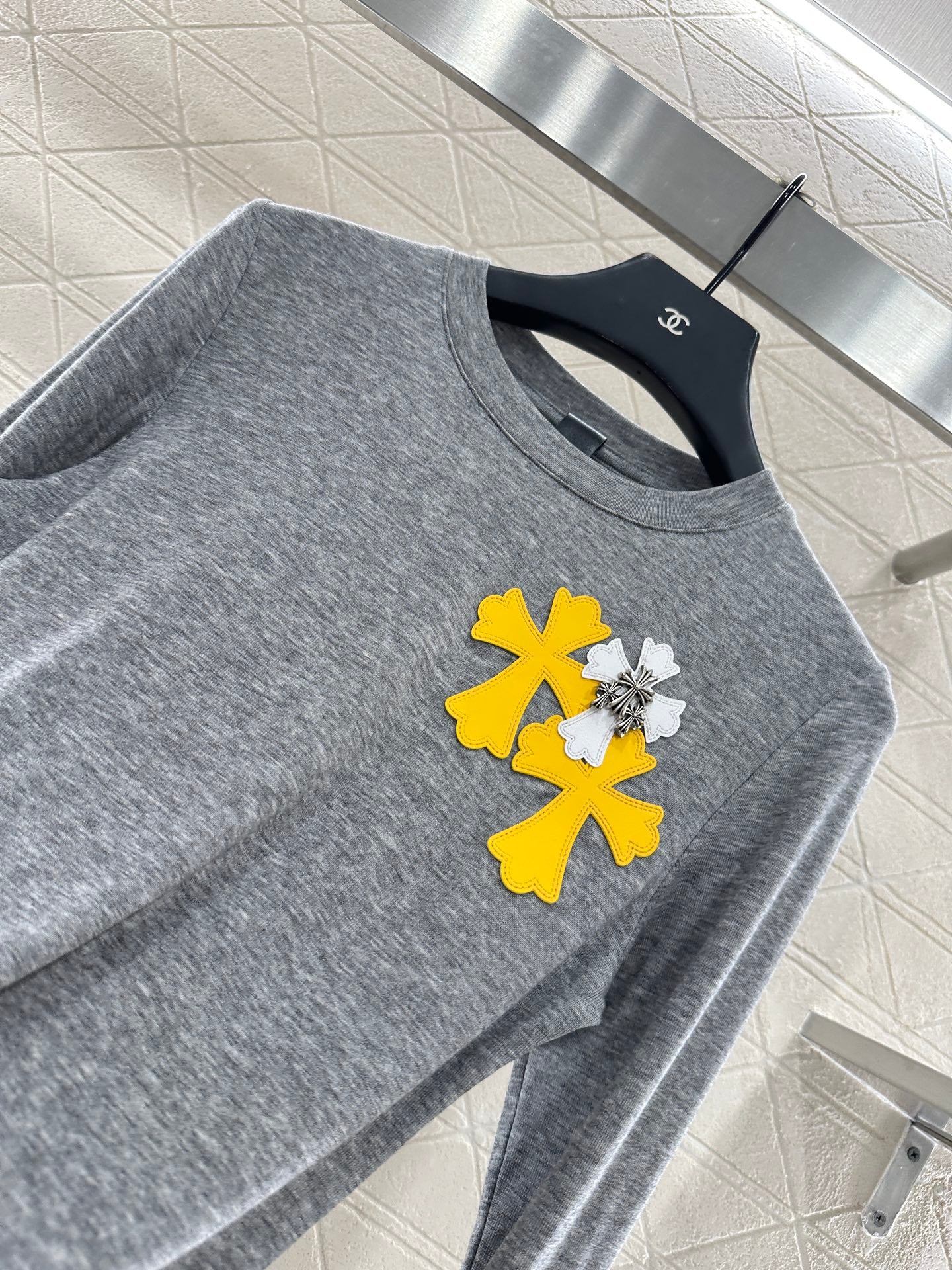 Tencel wool material, comfortable texture, full elasticity, slim fit round neck base cutting, three-dimensional contrasting cross totem logo embellished on one side of the chest, highlighting the brand style, elastic material, close fitting and comfortable slimming, visually narrowed and elongated, slim fit and slimming, fashionable and colorful when worn alone and worn internally