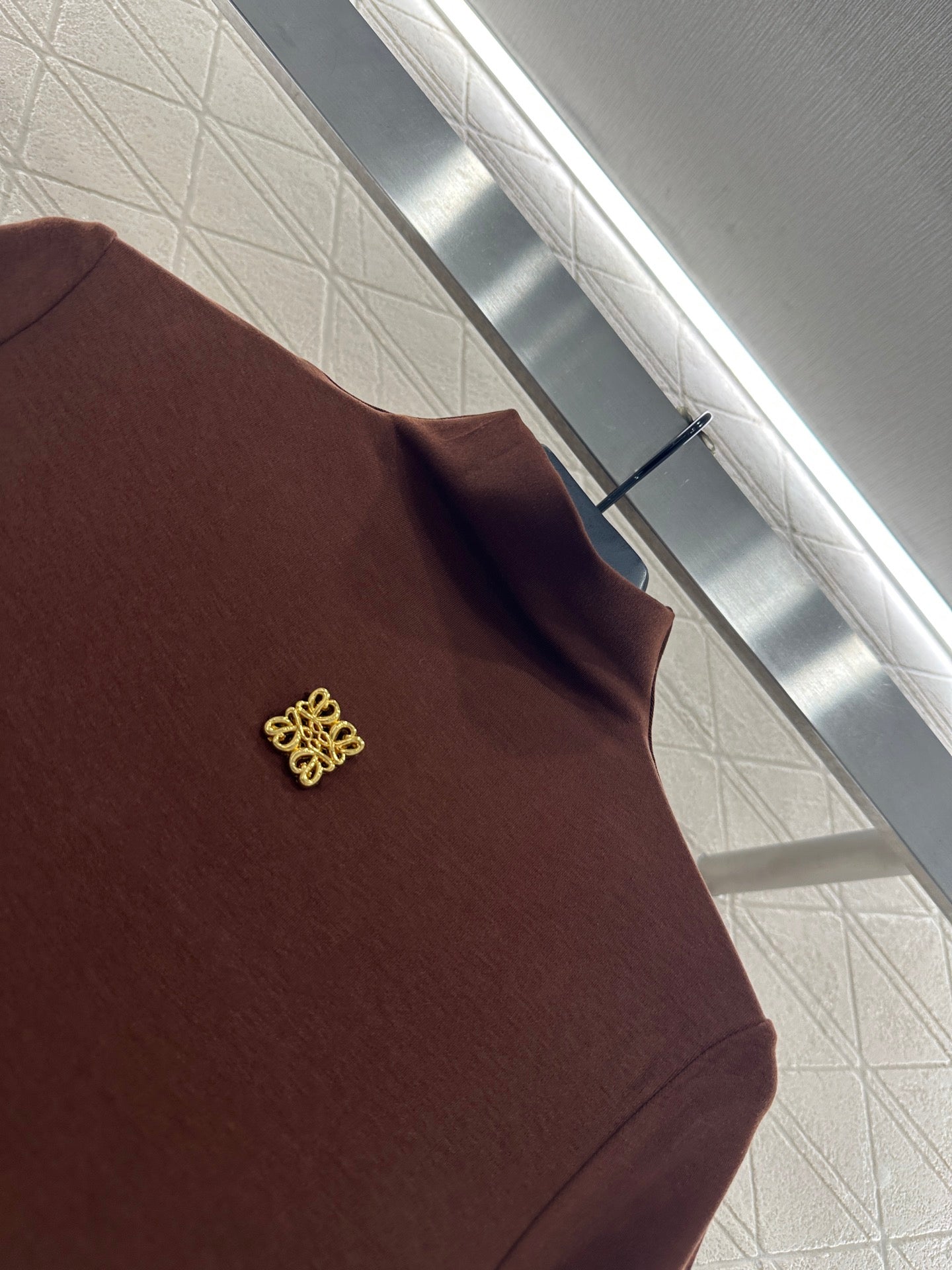 The twill cotton material is comfortable in texture and full of elasticity. The slim fit high neck bottom long dress is cut, and the gold totem logo is sewn in the center of the chest to highlight the brand style. It has a strong elastic fit and visually narrows and elongates. The hem is split on both sides, presenting a slimming effect and highlighting the beauty of women's curves. It is fashionable and eye-catching when worn alone.