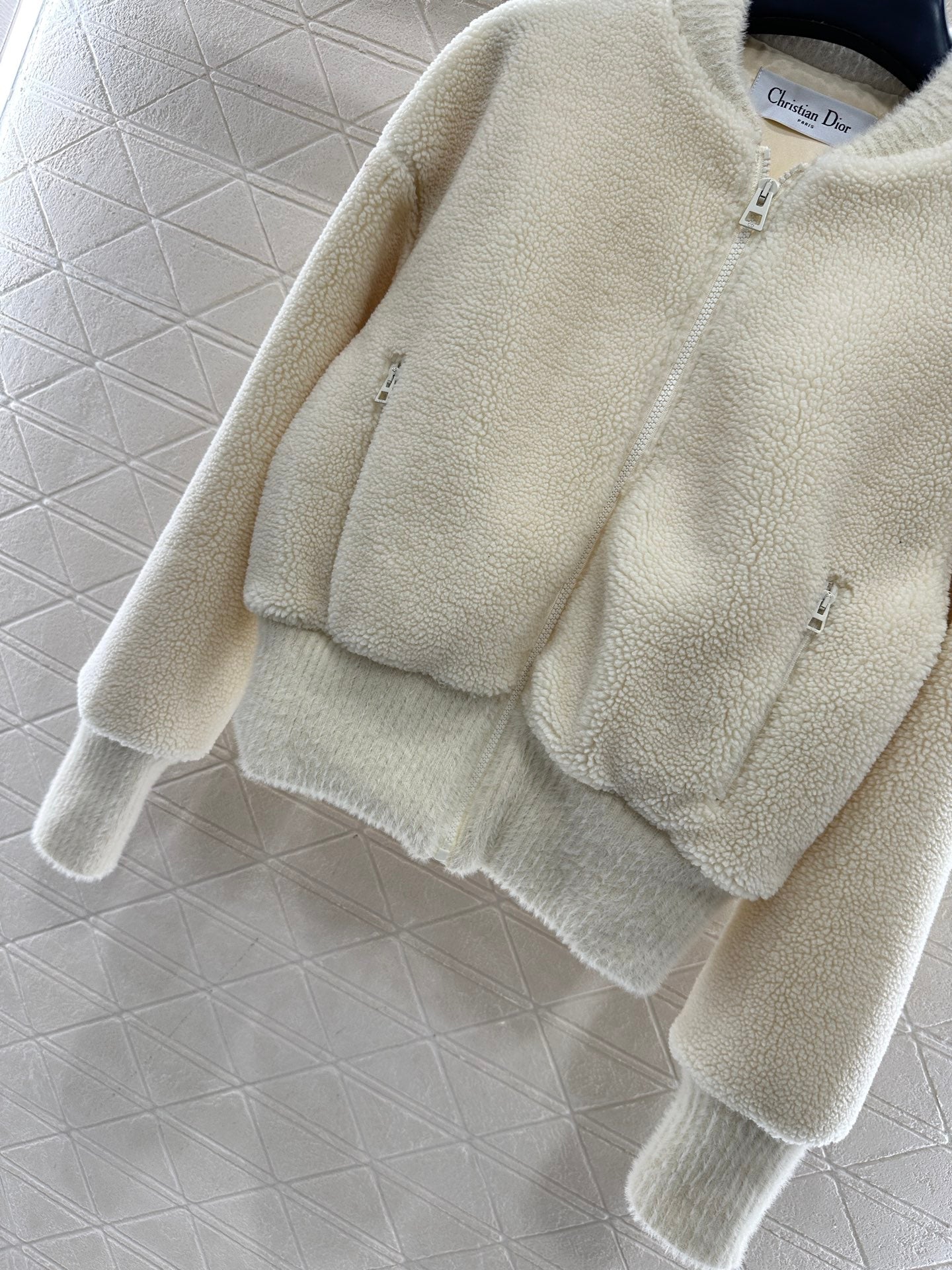 Teddy lamb wool material, abundant in fur, windproof and cold proof, lightweight to put on and take off, with a baseball style zipper jacket cut, fashionable and versatile. The outer layer is made of short woolen fabric, and the whole body is wrapped with threads to outline, providing a snug and warm fit without appearing bulky. It is suitable for more dressing occasions and personal styles, fashionable and trendy