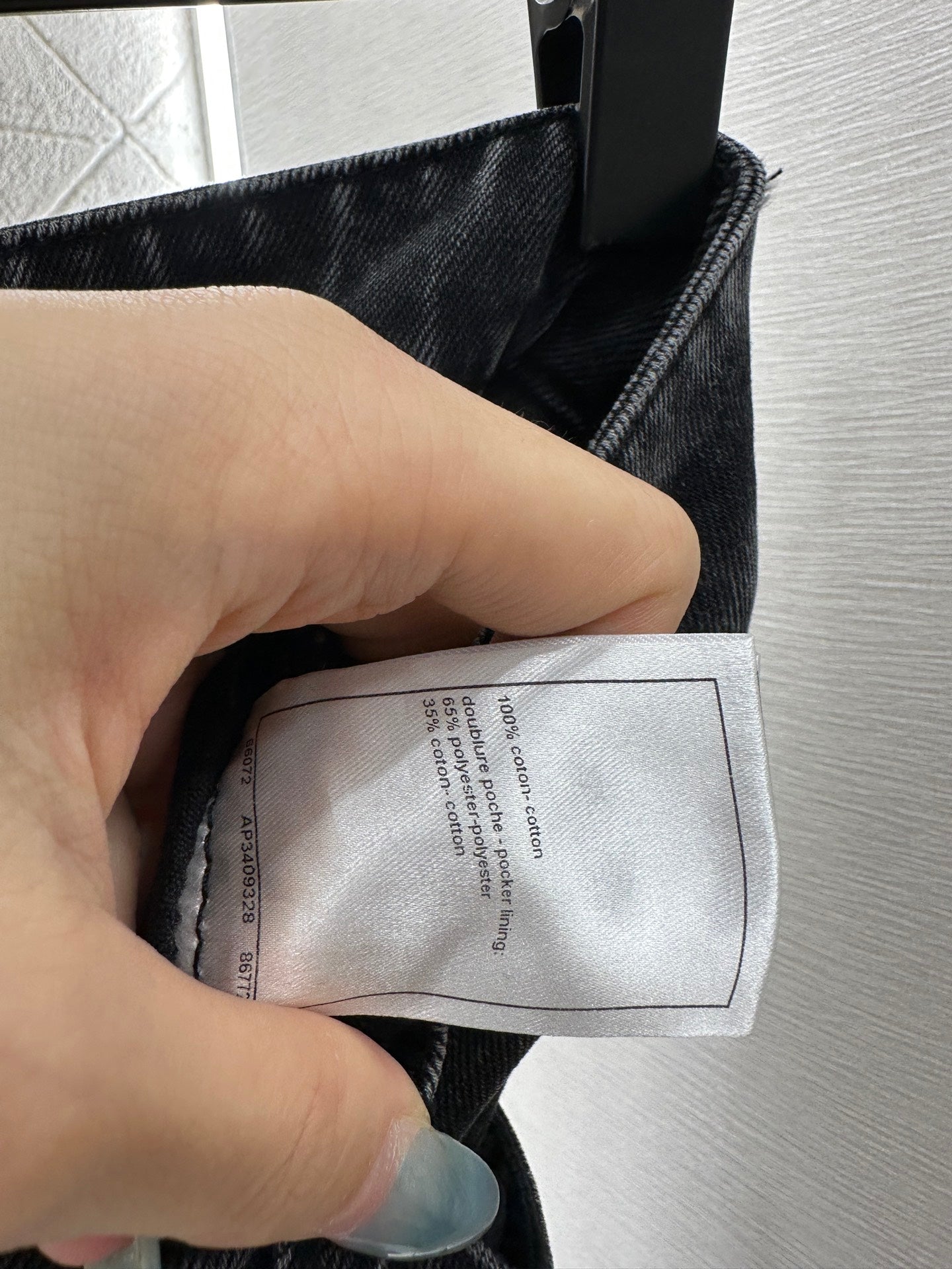 Twill cotton denim material, multiple washings, presenting a crisp texture, straight cut denim pants, symmetrical pockets paired with a basic and durable high-end design, center buckle with a three-dimensional bow tie ➕ The double C logo is embellished, echoing the contour of the bow stitching on the outside of the knee, highlighting the brand's style and creating a slimming style. The straight leg accommodates the shape of the leg, slender and sleek, and can be matched with any outfit to make it fashionable and colorful, suitable for all seasons.