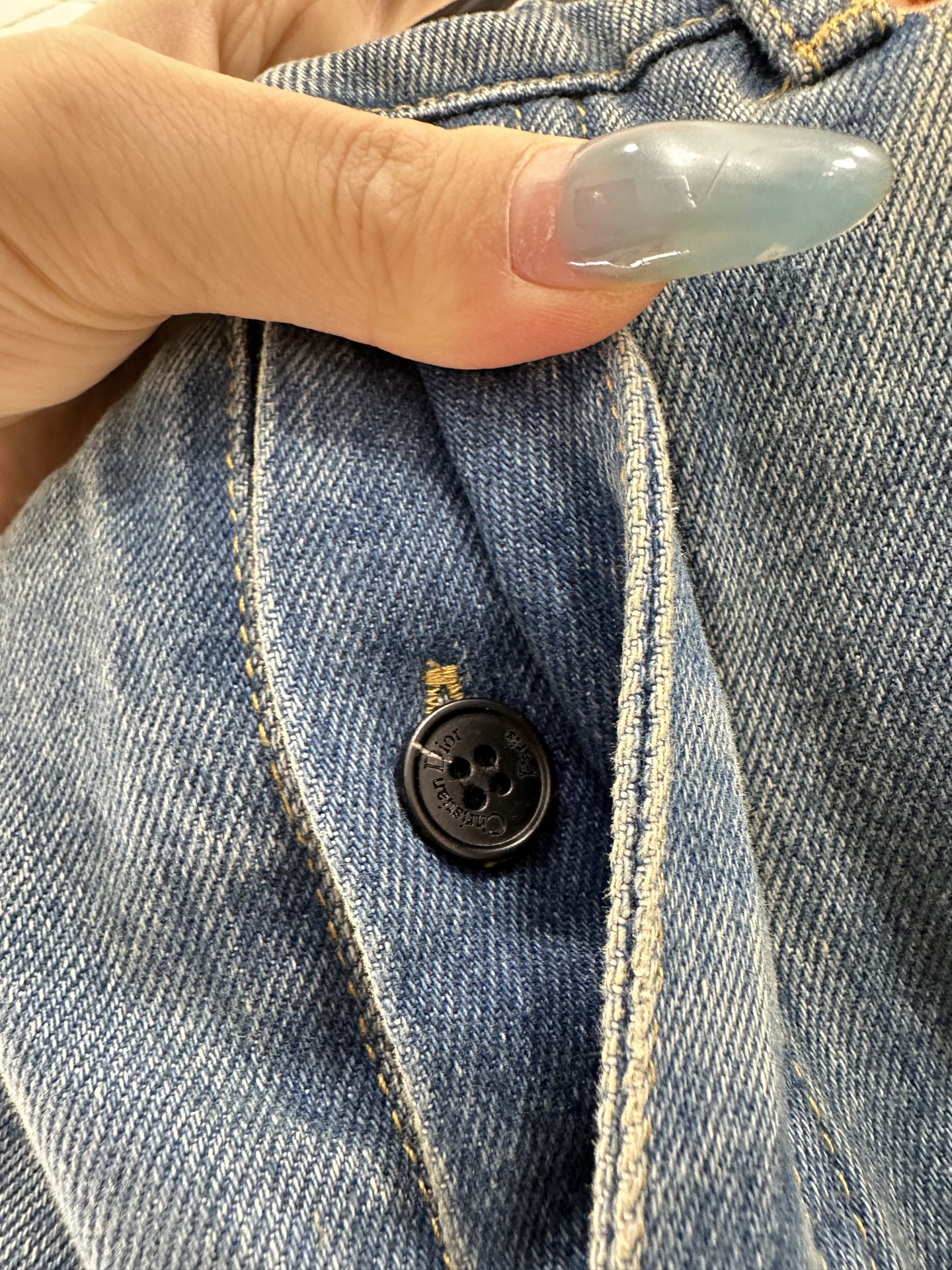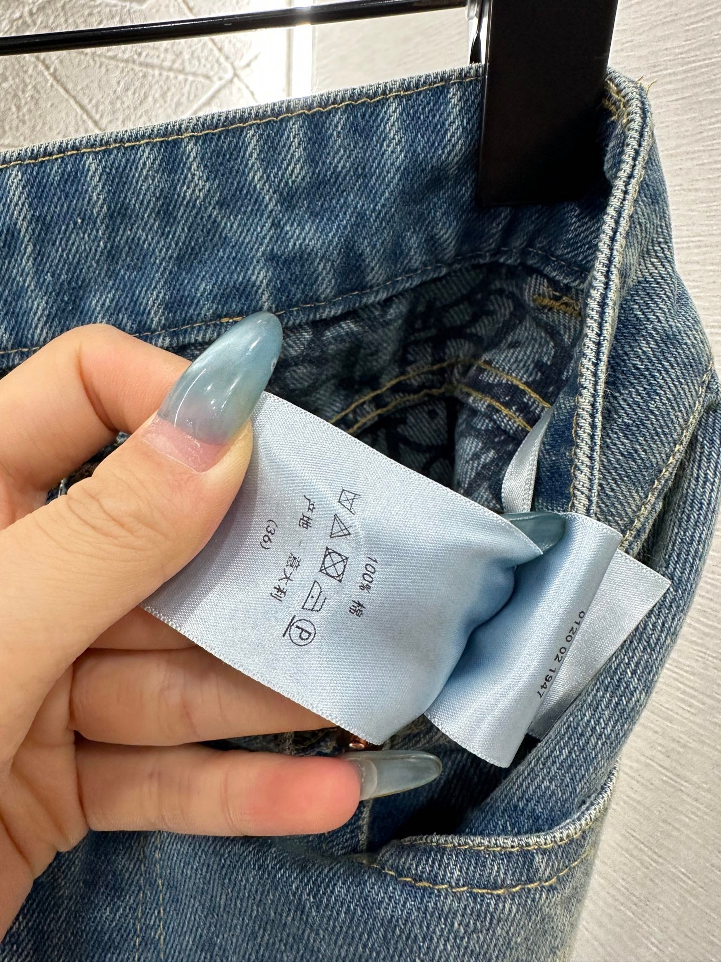 Twill cotton denim material, delicate texture, stylish dressing, straight leg pants version, evenly dyed with enzyme water washing throughout, retro deep blue ➕ Crafted with a distressed and white pleated texture, versatile and durable. The back waist is embellished with letter leather tags, which echo the letters printed on the lining. Folding it over reveals a more stylish look, highlighting the eye-catching and fashionable style. The outfit is relaxed and lazy.