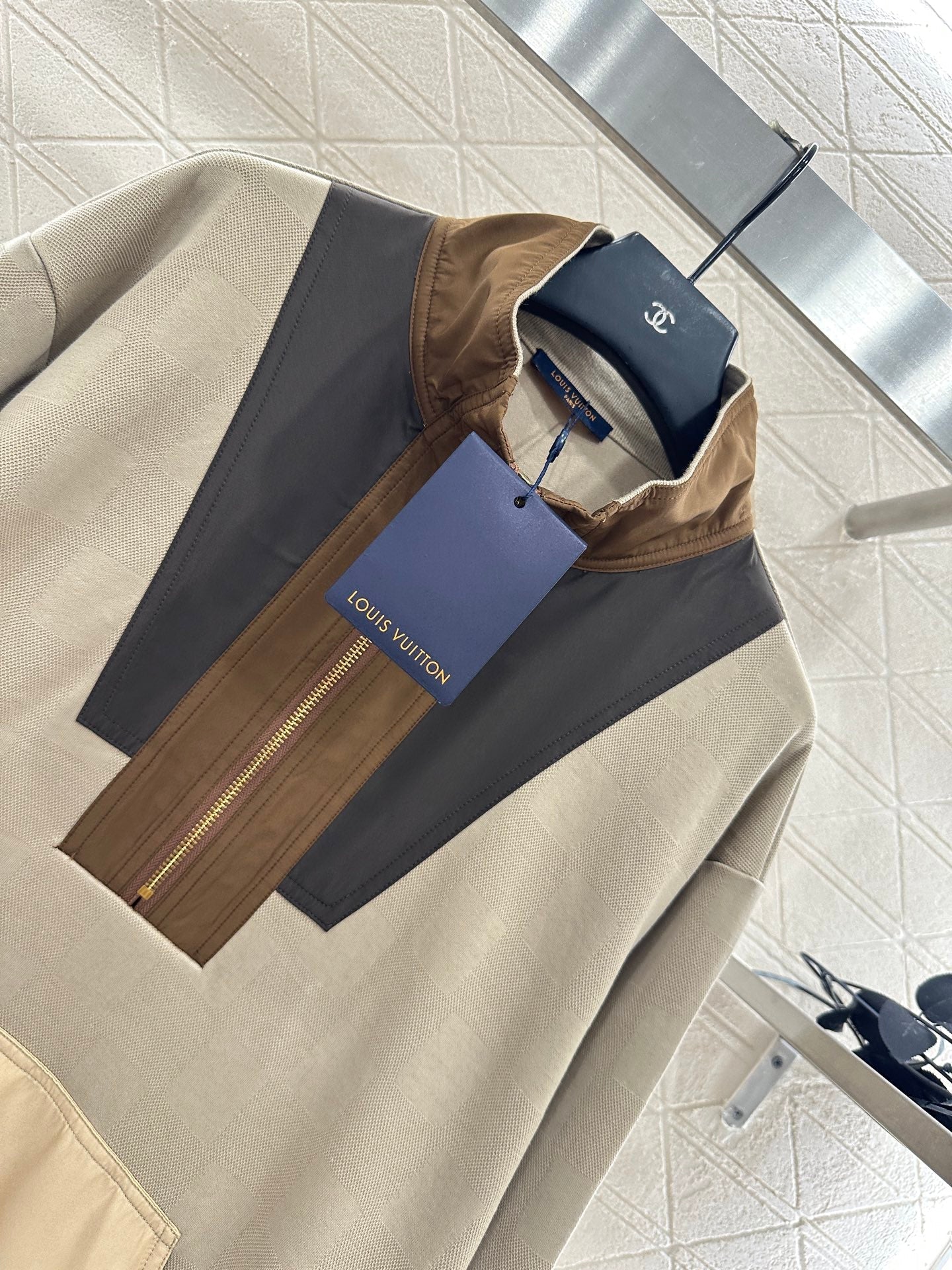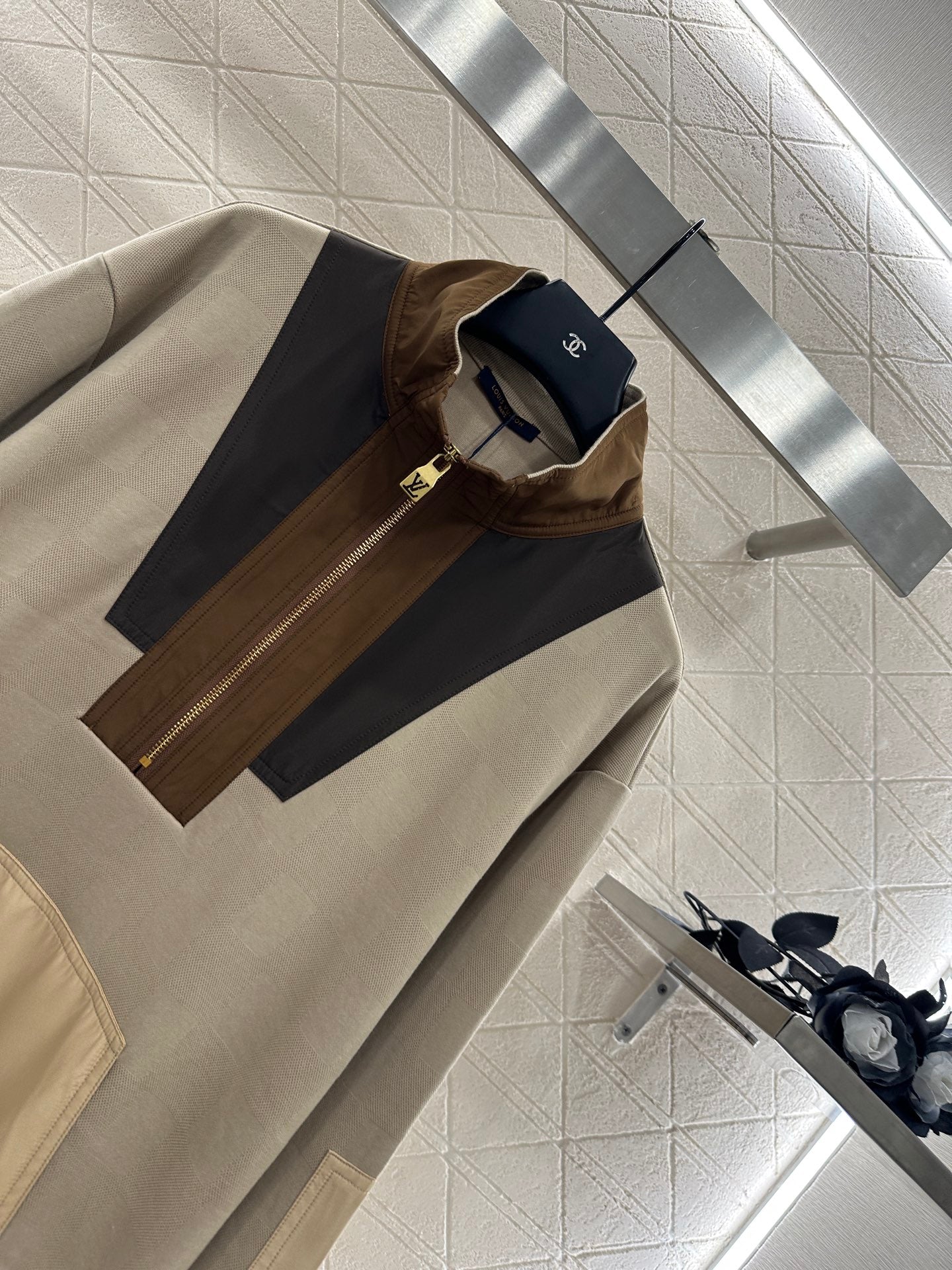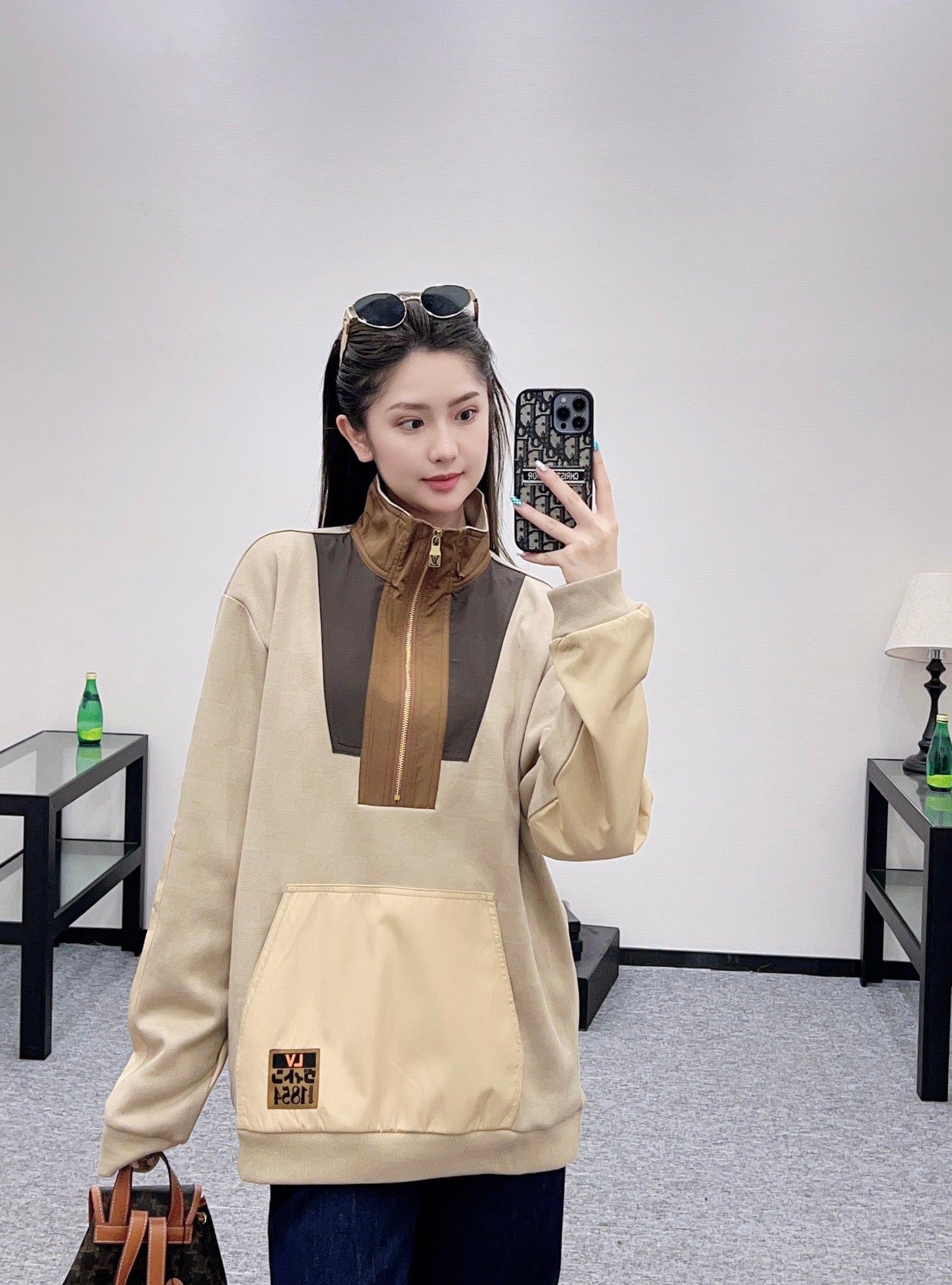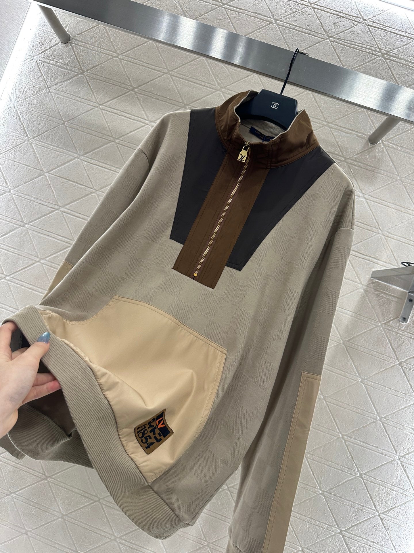 All cotton material has a high-quality texture that is not easily deformed after long-term washing and pilling. It is suitable for wearing and has an oversized sweatshirt version with a semi open zipper design. The whole body is made of fine and dense fabric, breathable and windproof. The loose shoulder is more prominent, and the neutral and relaxed style is versatile. The whole body has four color blocks, collision splicing colors and uniqueness, full of retro atmosphere. The embroidered letter logo element at the hem highlights the brand style. The elastic thread edging details are full marks