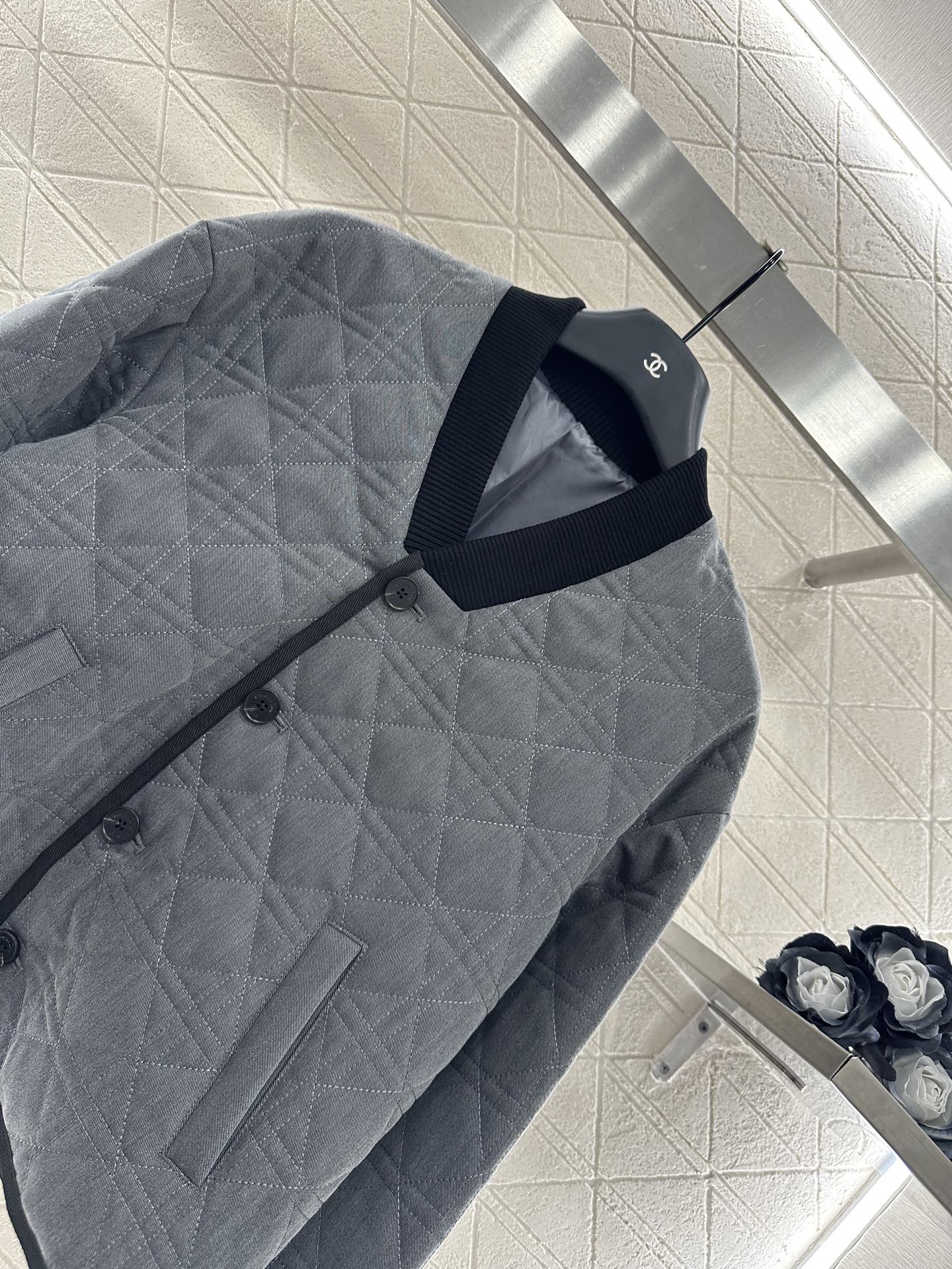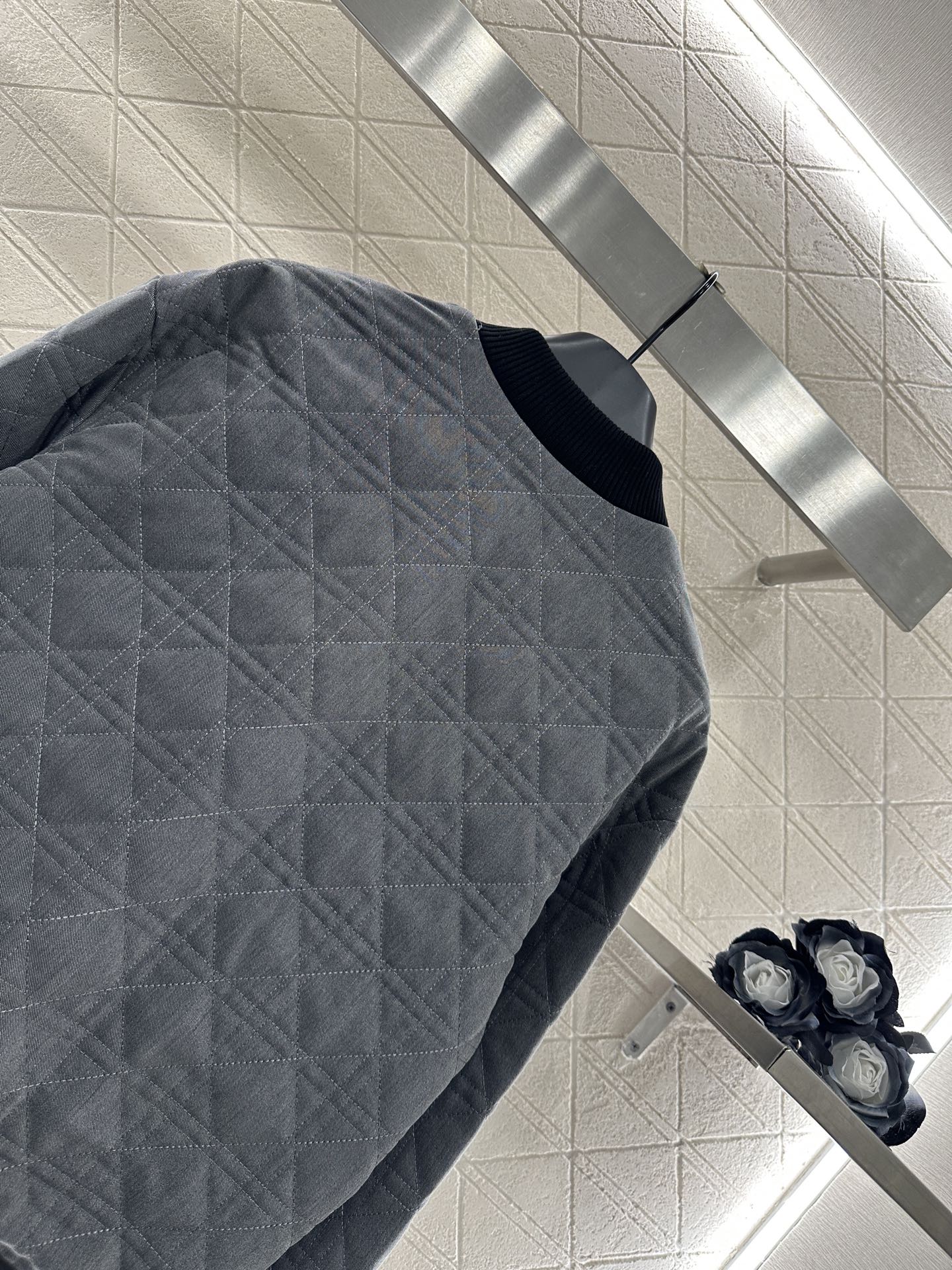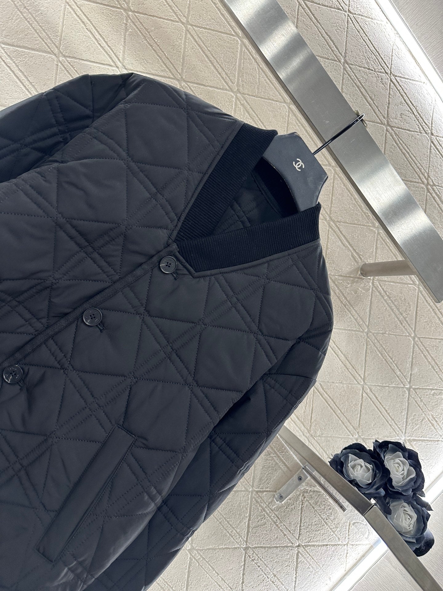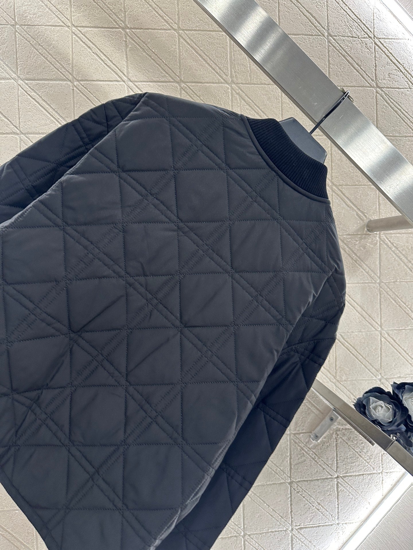 Windproof and waterproof nylon material, filled with down cotton lining, the whole piece is lightweight and warm, with a threaded collar extending to the front, shoulder drop treatment, and a full body rattan grid pattern embossed, echoing the bee CD embroidery logo on the waist side, presenting the brand concept and showcasing luxury charm. Straight cut, inclusive and fashionable, with a trendy and Western style.