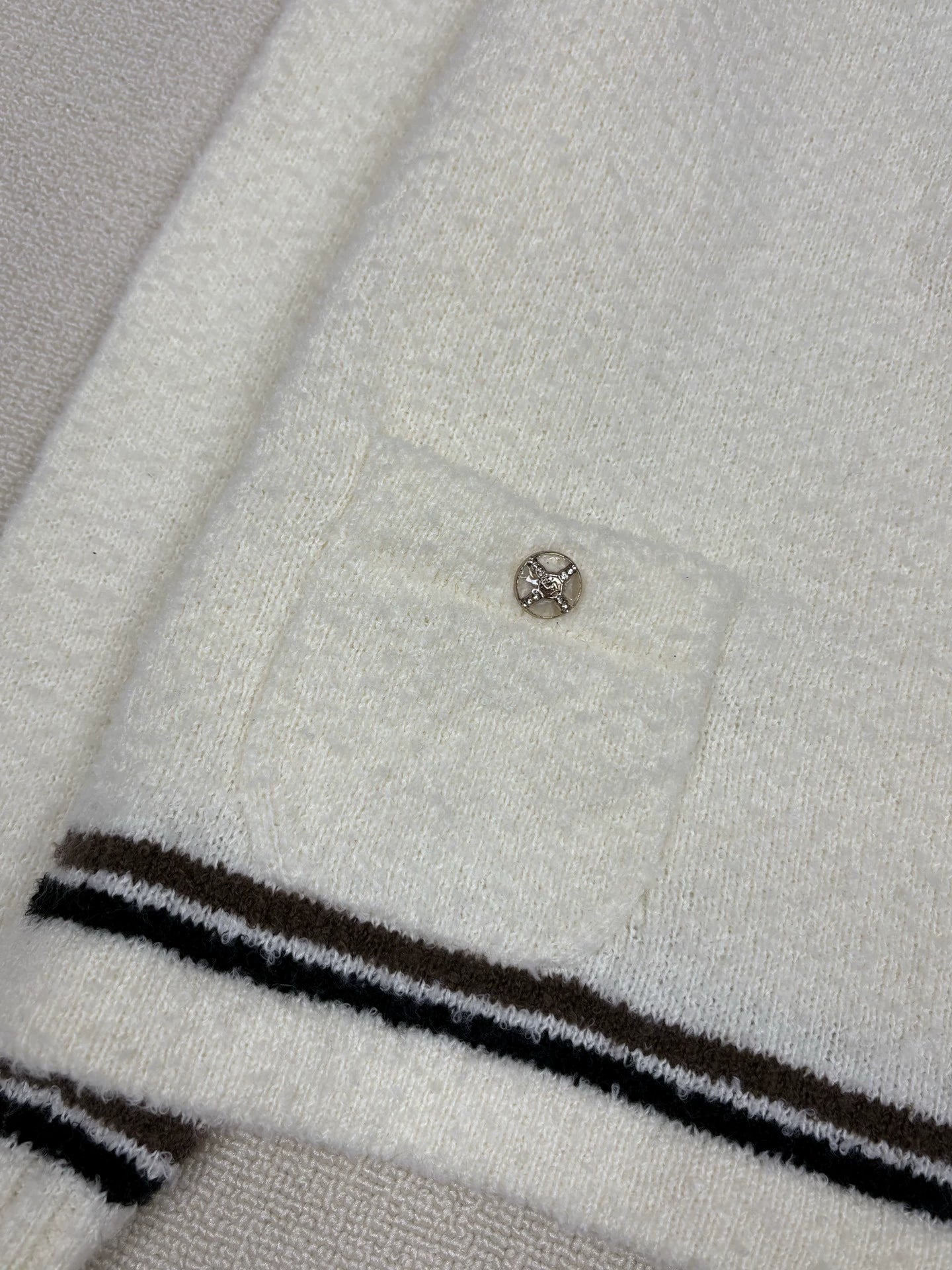 100% wool, classic striped edge design, zipper placket, pocket decoration, comfortable to wear in autumn and winter seasons, soft and skin friendly, exquisite workmanship, perfect attention to detail. Loose fit, suitable for daily commuting and leisure wear, versatile with skirts or pants.