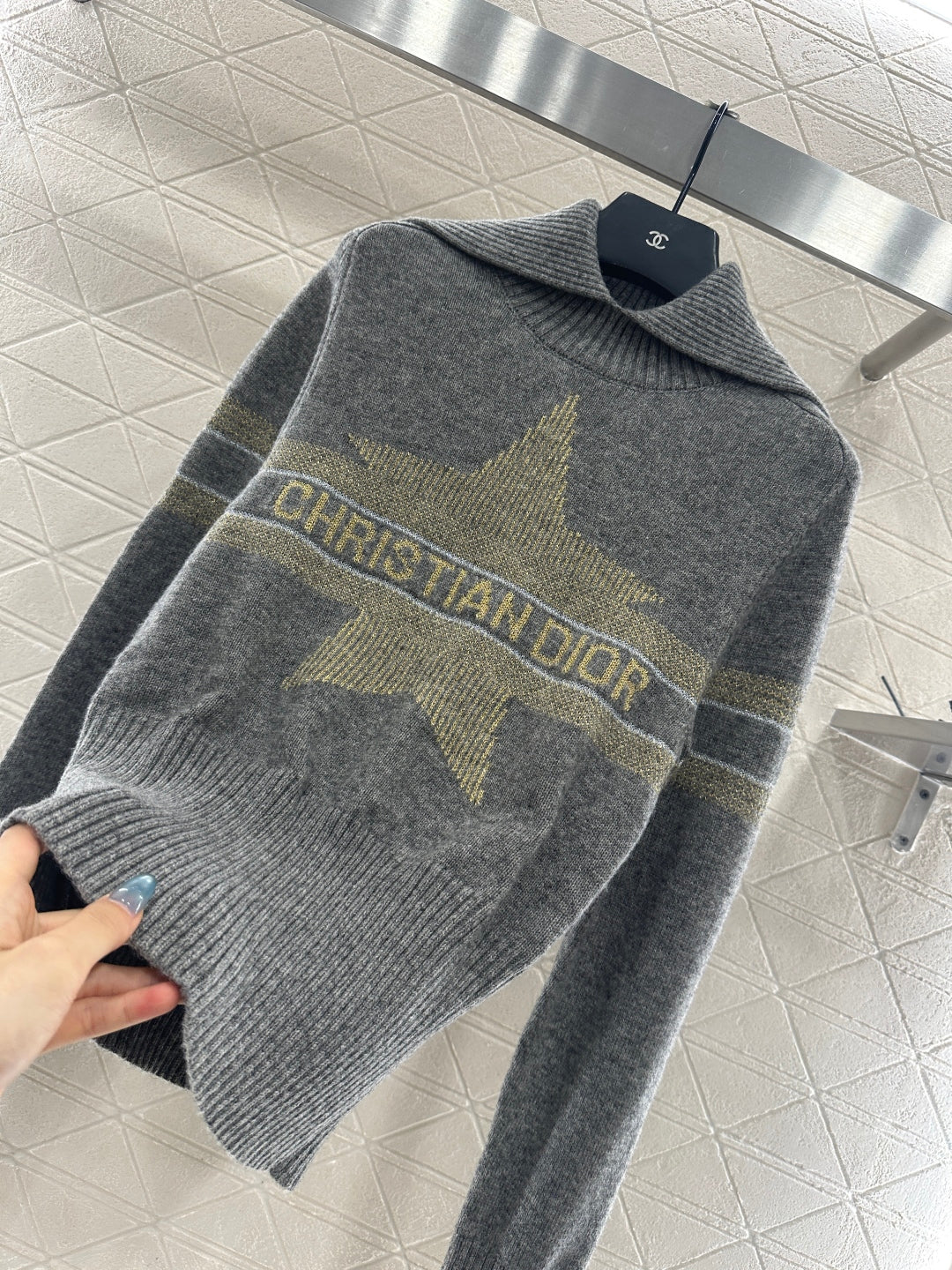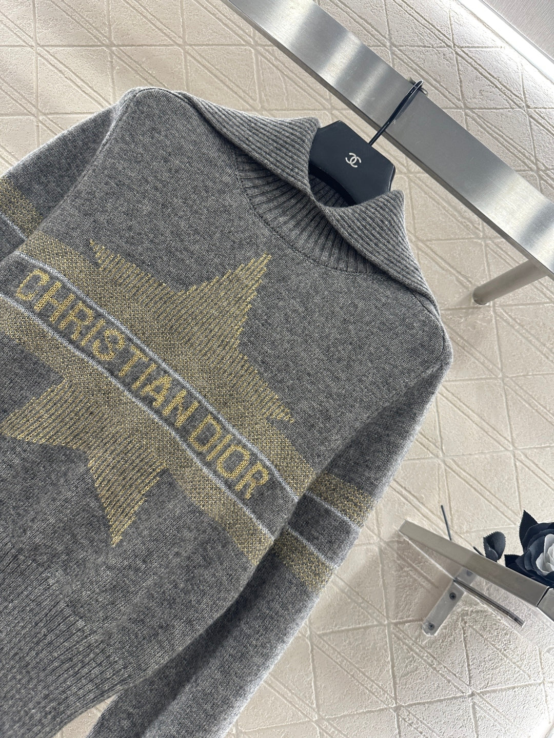 Crafted from cashmere and wool yarn, with a premium texture and comfortable softness, this sweater features a large collar and long sleeved cut. It is tightly knit with intricate details and grooves, providing better insulation and wind resistance. The wide threaded cuffs complement the hem, and the horizontal bar on the chest is embellished with letter hooks ➕ The pentagram pattern decoration highlights the brand's tone, with a regular shoulder design that is simple and versatile for autumn and winter daily wear, handsome and fashionable.