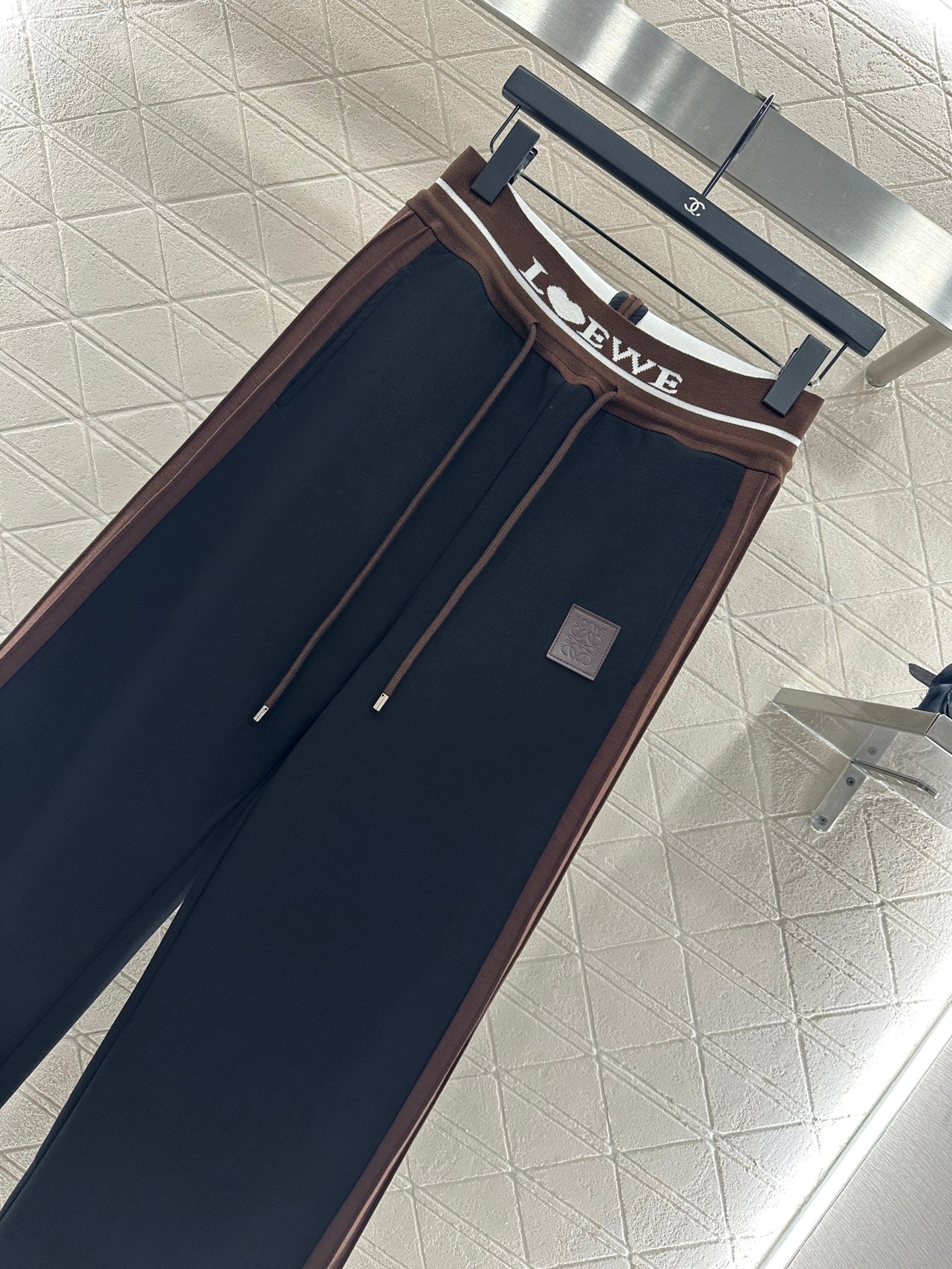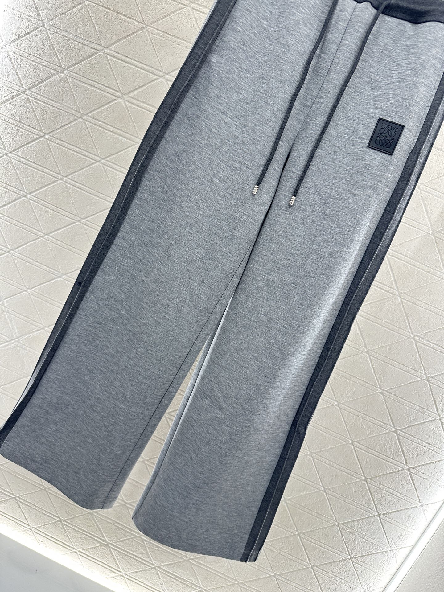 The fabric is soft and comfortable, hanging smoothly and stylish. The high waisted drawstring wide leg pants are designed with a snug elastic webbing to decorate the waist and create a casual effect. The striped contrasting color creates a relaxed and stylish style. The iconic letter logo at the waist instantly enhances the brand's style, making it easy to control the outer side of the pants. The contrasting color edge is hooked and the contour is matched with the wide leg pants. The treatment is inclusive and decorates the leg shape. At the same time, the totem leather logo highlights the style and exudes a fashionable high street style