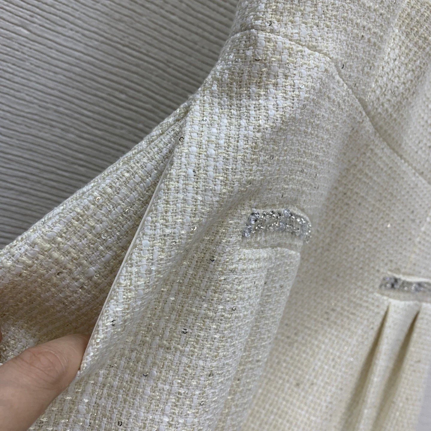 Handmade crochet embroidery, low-key luxury, micro transparent sparkling sequin design, wonderful three-dimensional decoration, heavy industry luxury, absolute masterpiece, pure handmade crochet craftsmanship, elegant temperament, low-key luxury, classic H-style, casual elegance, not picky, super slim on the upper body