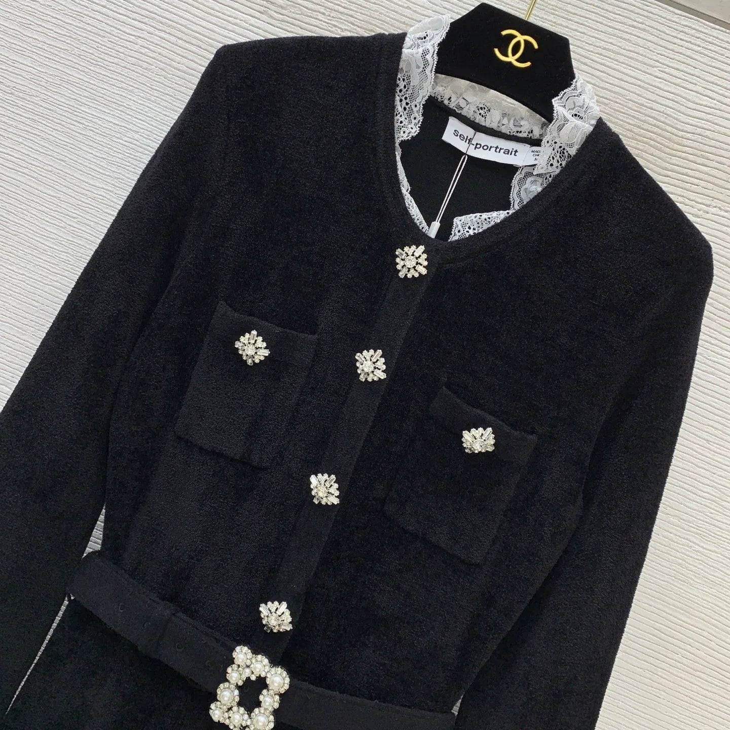 Suede Snow Knitted Fabric, Overall Silhouette Shapes Look Skinny Super! Elegant temperament, heavy industry, diamond studded buttons, lace lace stitching, ruffle edge skirt, slim fit and slimming, long sleeved knitted dress ➕ Equipped with a diamond square buckle waist belt