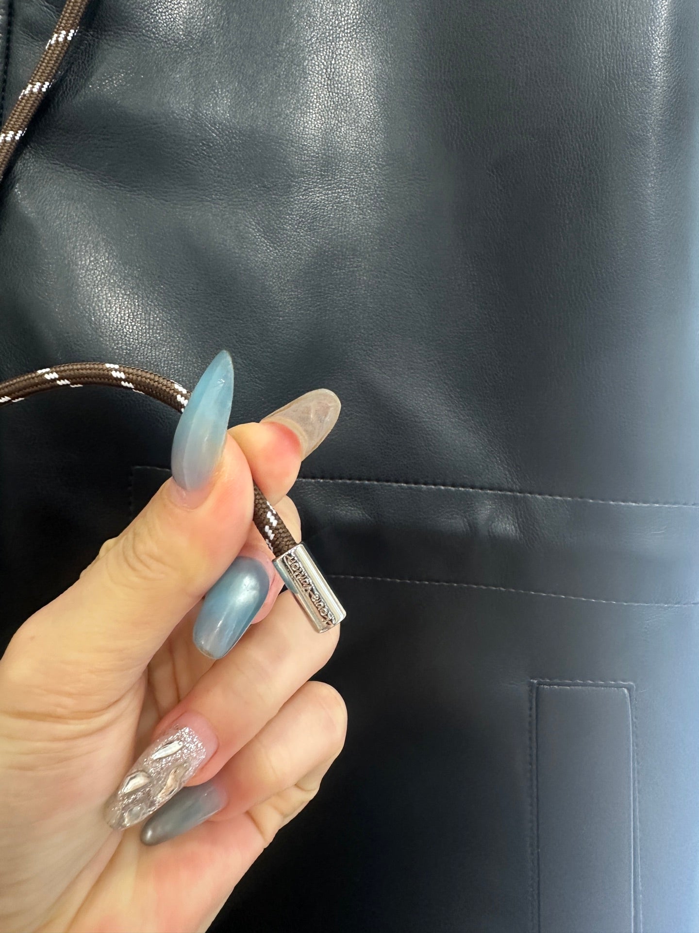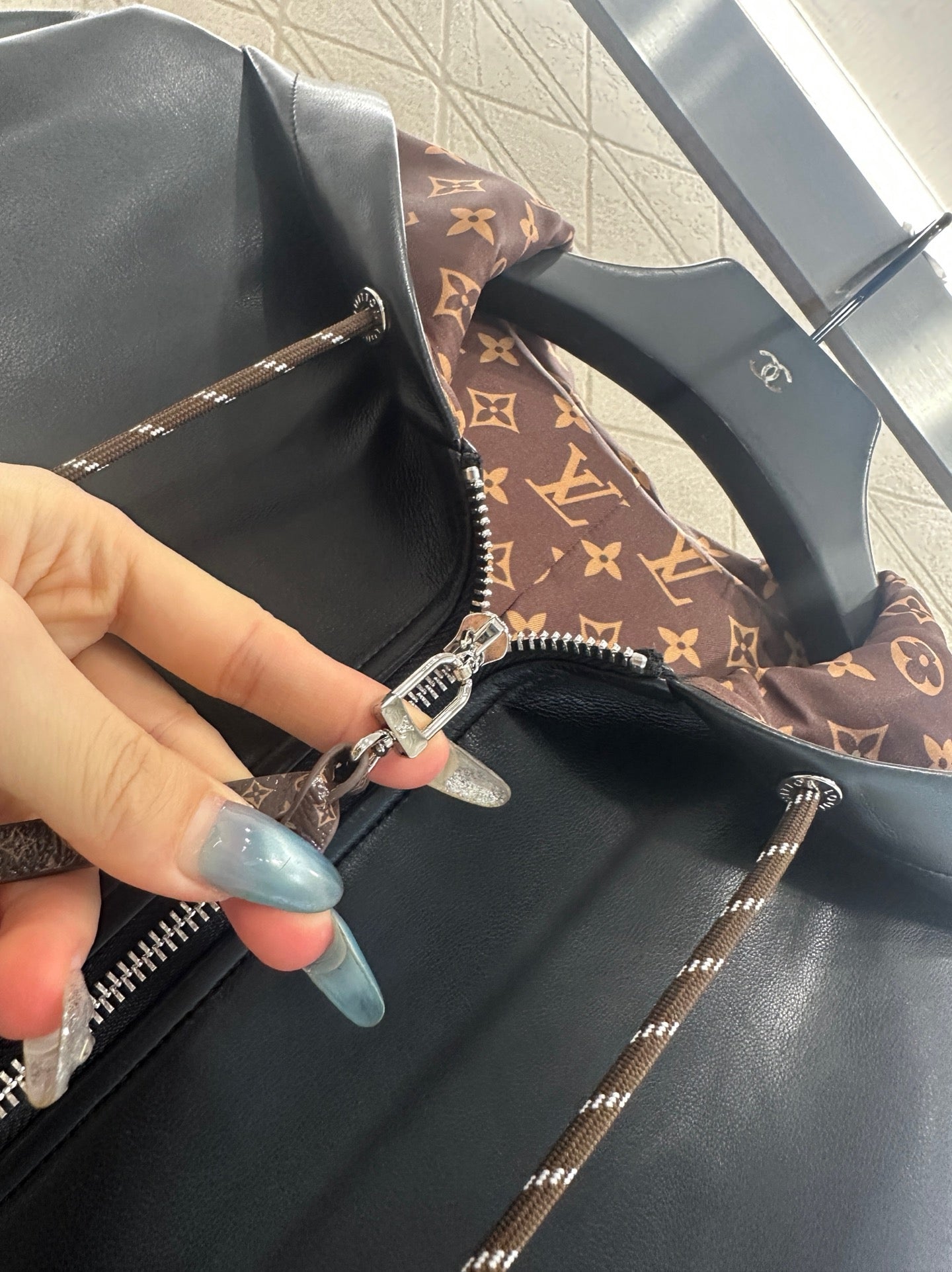 Customized YB imported washed leather material, delicate texture, soft and skin-friendly, hooded zipper jacket version, dropped shoulder version, loose and fashionable, waist drawstring outline curves, while also playing a role in dividing proportions, the inside is covered with four-leaf clover patterns and letter logos, highlighting the high-end brand style, fashionable and stylish