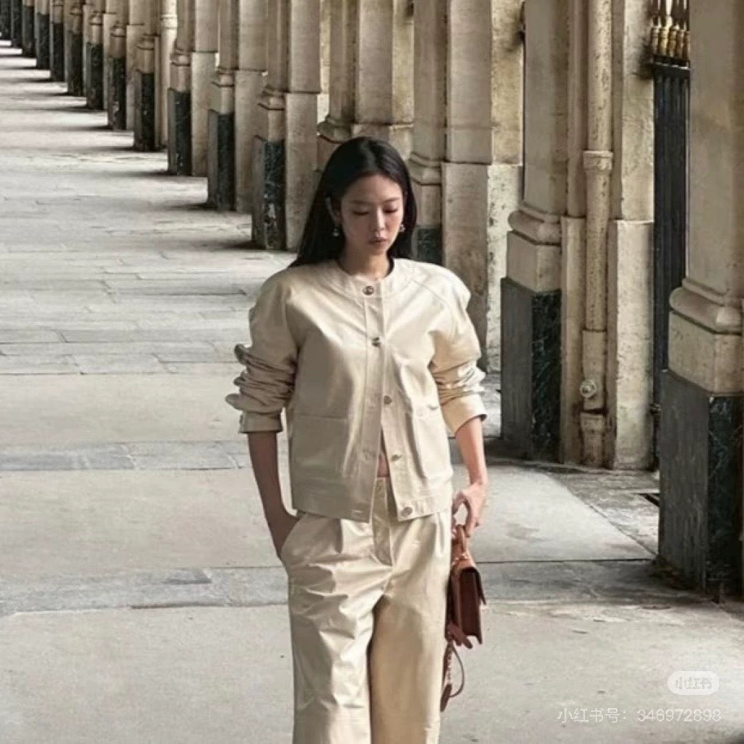 Texture, luster, delicate and stylish round neck shoulder jacket with symmetrical cut pockets and durable basic contour lines. High end front with engraved buttons and double C letter logos, highlighting the brand style. It stands out in any outfit with a fashionable and high-end temperament ⚠️ Ceiling version with jacquard silk lining