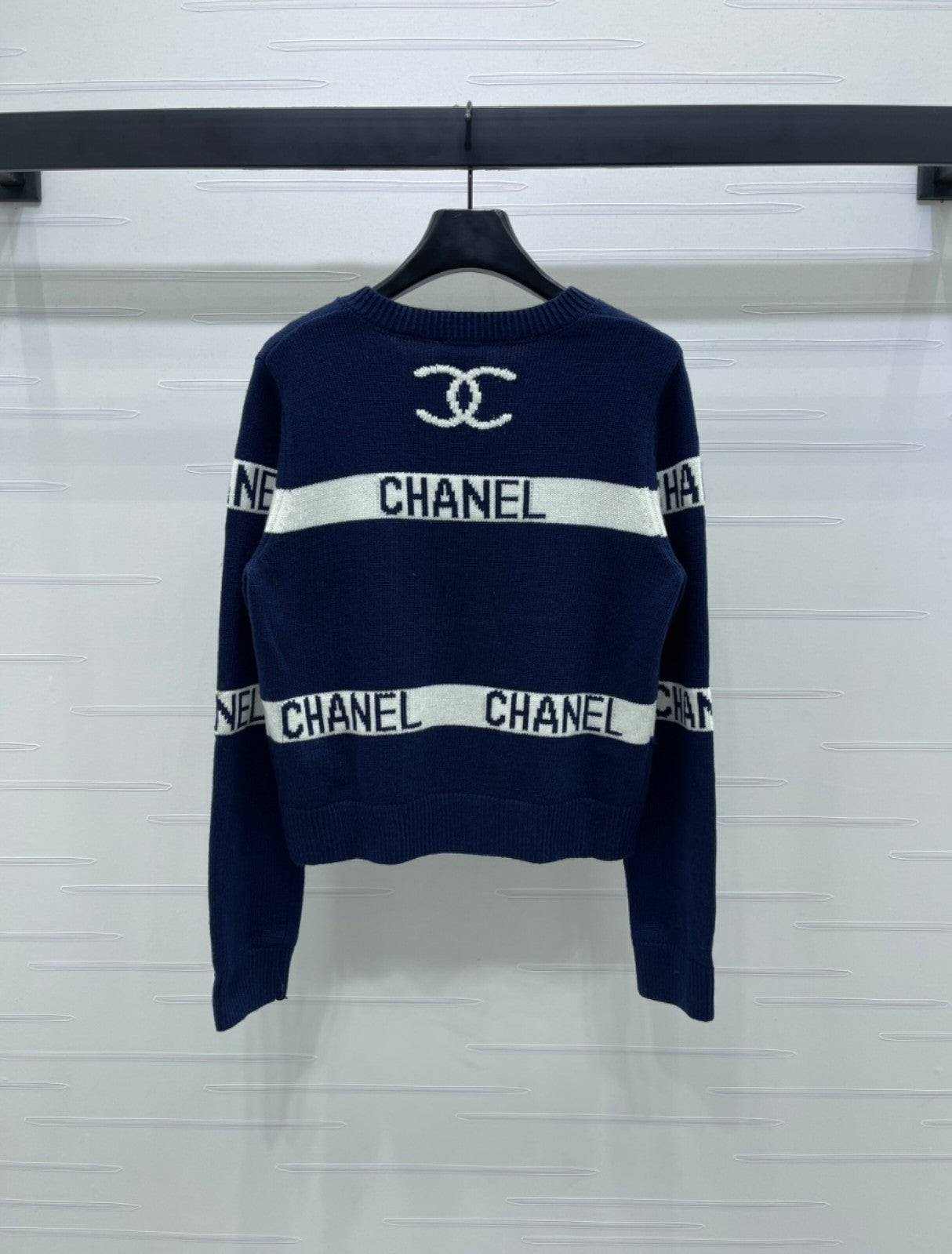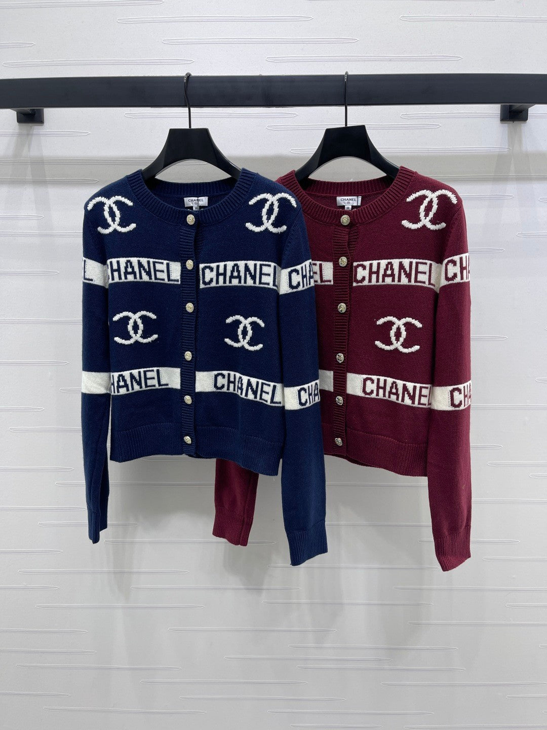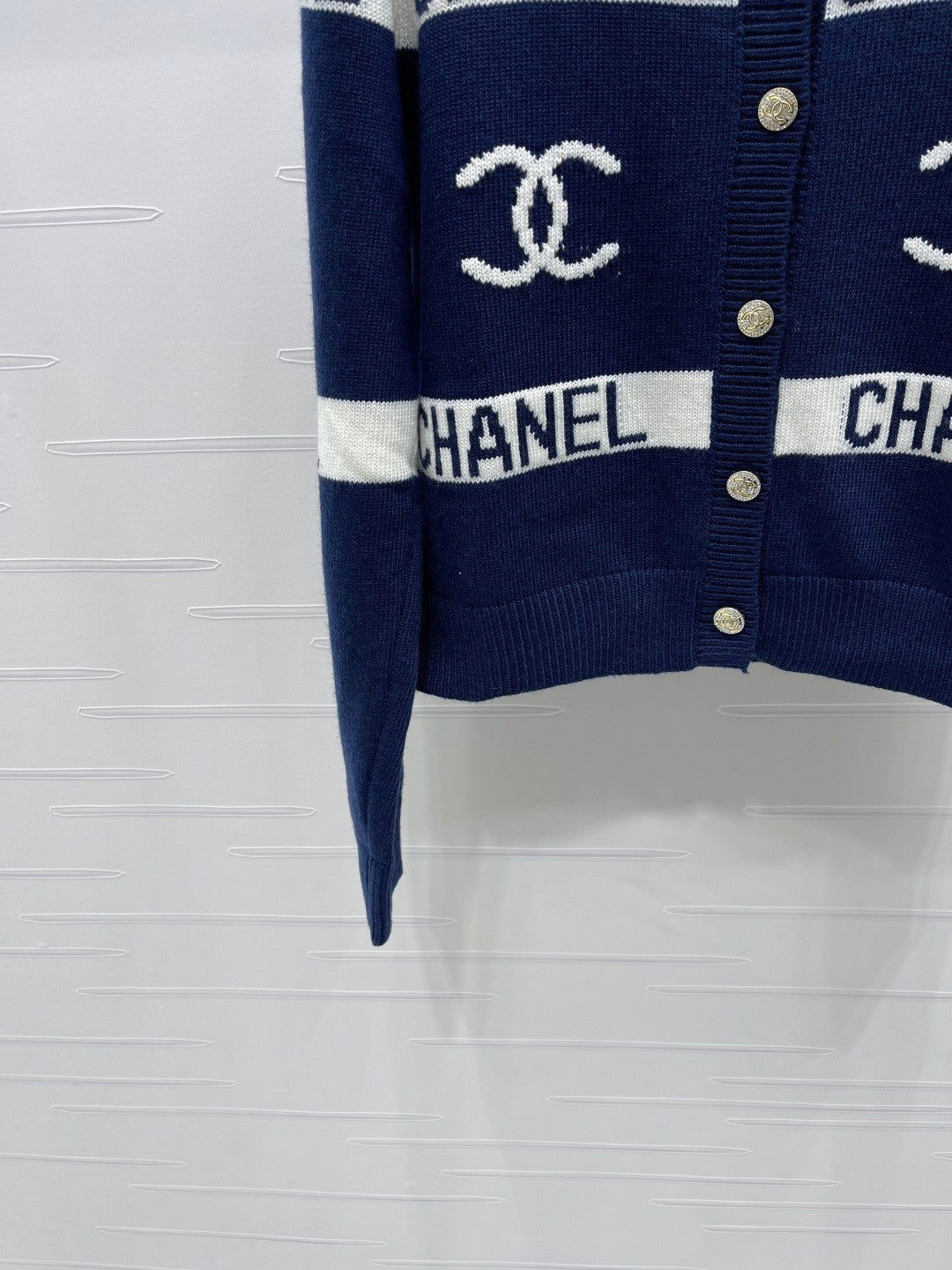 Wool knitting weaving texture, high-end comfort, soft texture, obvious round neck, shoulder cardigan, highlighting gentle temperament, collar, cuffs, threaded edging, large body, horizontal contrasting color, striped distribution ➕ Double collision of letters and logos, rich layering, front placket round buckle with engraved double C logo decoration, highlighting brand tone, regular slim fit, no picky figure, age, autumn and winter, simple and versatile for daily use!