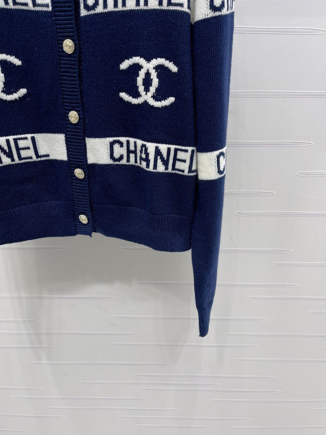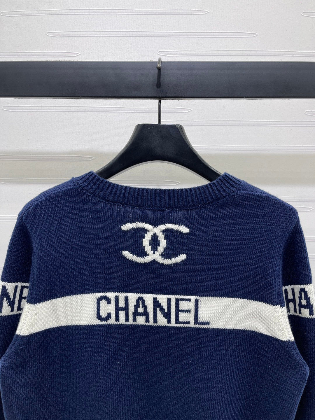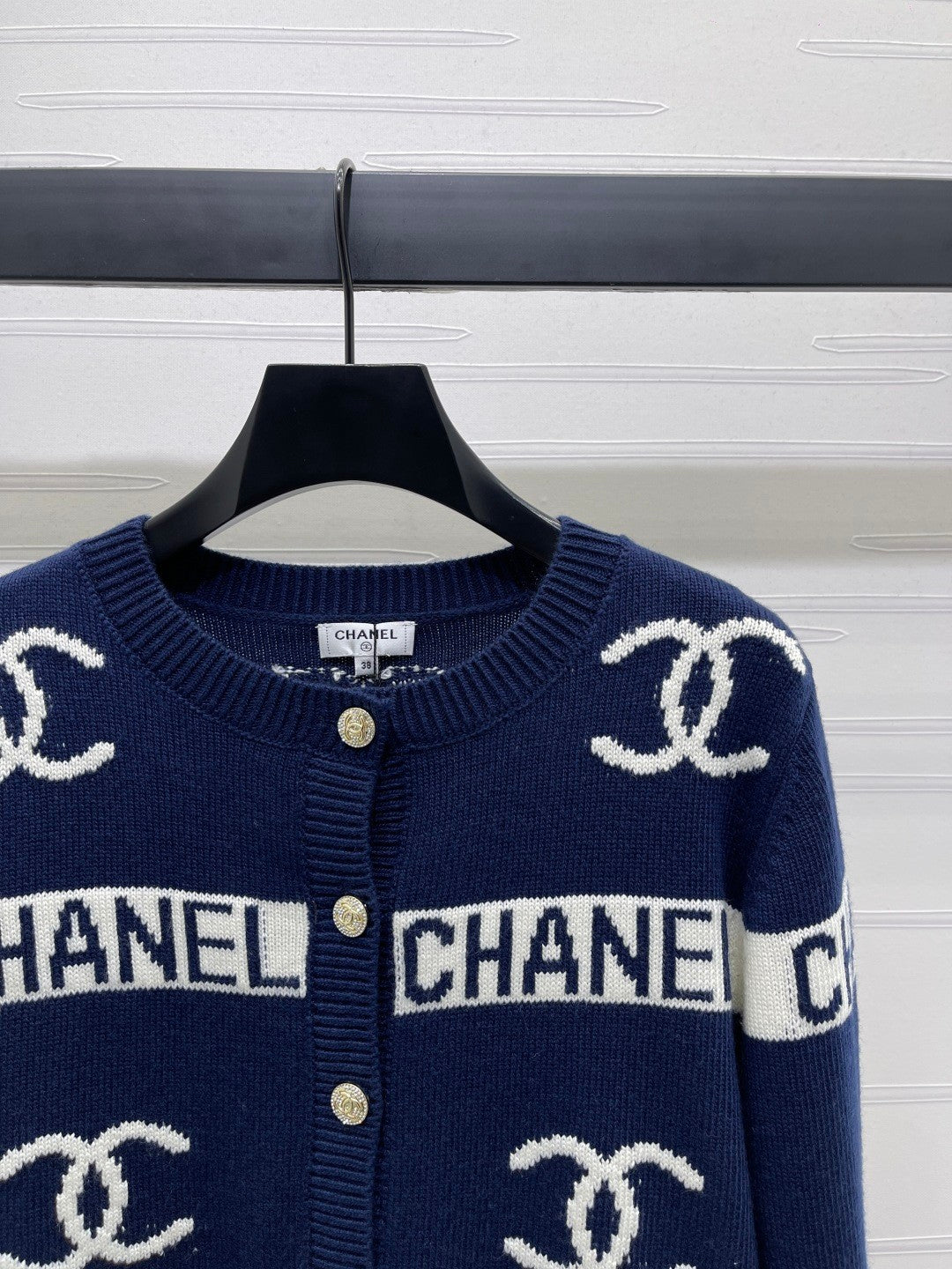 Wool knitting weaving texture, high-end comfort, soft texture, obvious round neck, shoulder cardigan, highlighting gentle temperament, collar, cuffs, threaded edging, large body, horizontal contrasting color, striped distribution ➕ Double collision of letters and logos, rich layering, front placket round buckle with engraved double C logo decoration, highlighting brand tone, regular slim fit, no picky figure, age, autumn and winter, simple and versatile for daily use!