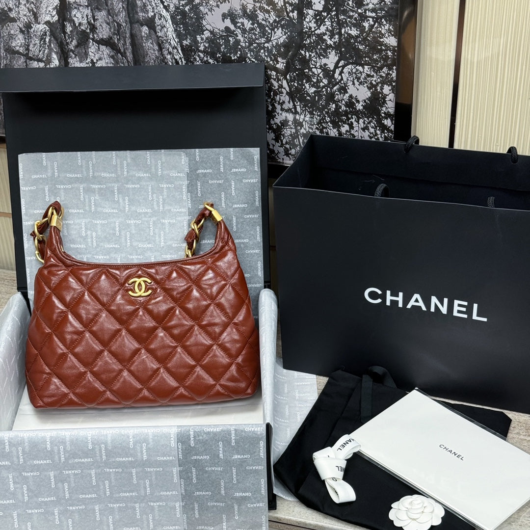 Hobo Handbag Shiny Calfskin & Gold-Tone Metal