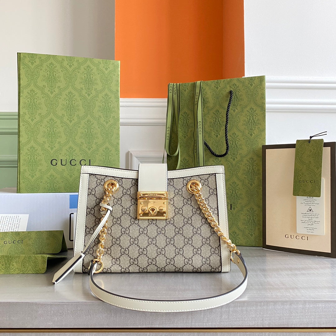 Padlock small shoulder bag Beige/ebony GG Supreme canvas, with brown leather detail