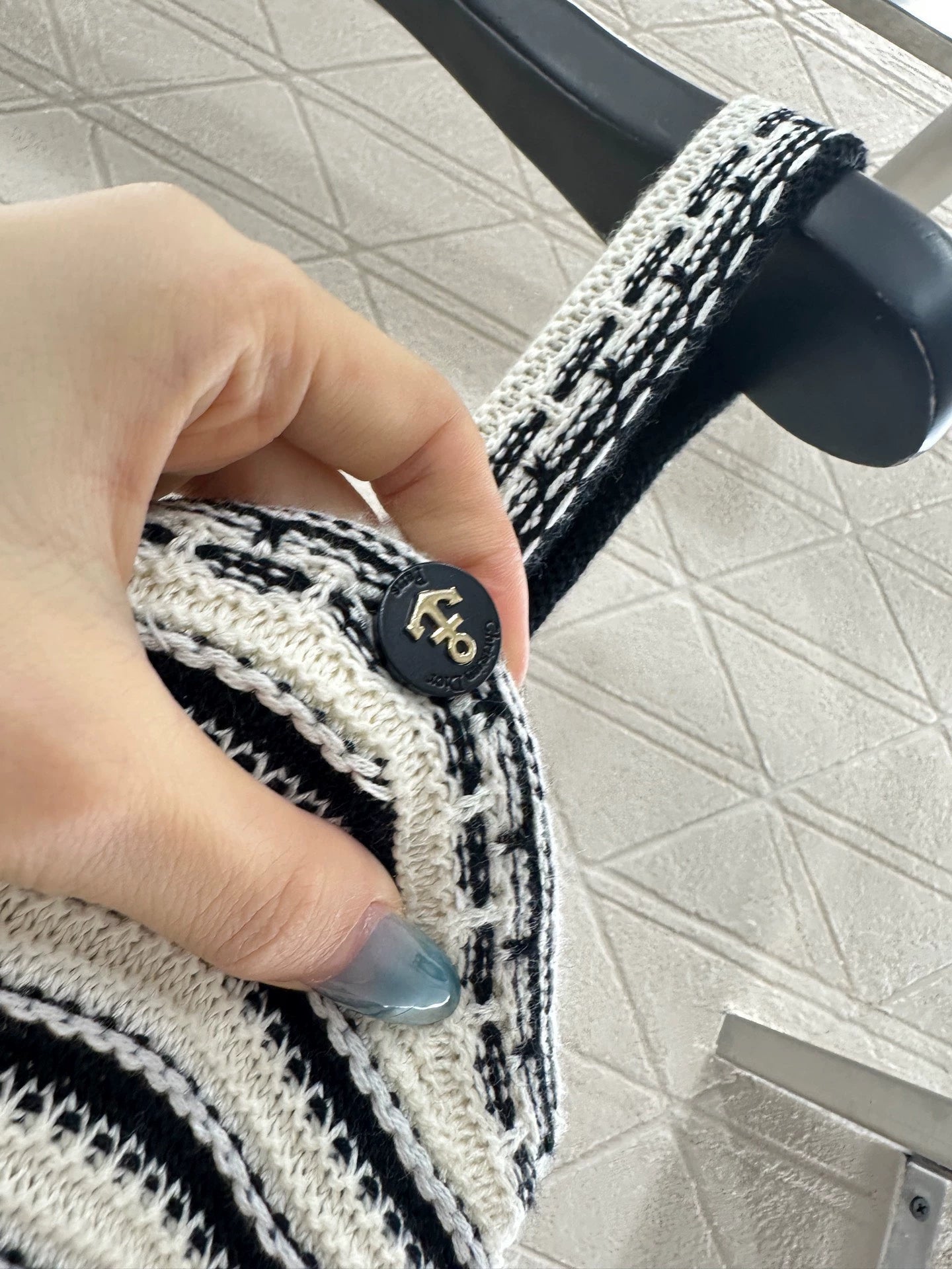 Woolen yarn weaving, soft and skin friendly, comfortable and stylish, round neck long sleeved cardigan version, collar extending to both sides of the cuffs, with three-dimensional texture crochet, adjustable to expose the skin appropriately, beautifying the head and shoulder ratio for a slimmer look, large body concave convex texture creates a striped feeling, matched with boat anchors ⚓ Button decoration, with a strong retro style, the hem and cuffs echo each other, tightened with the same plain black lace, the design is full of taste, playful and youthful, and easy to handle for daily travel or gatherings.