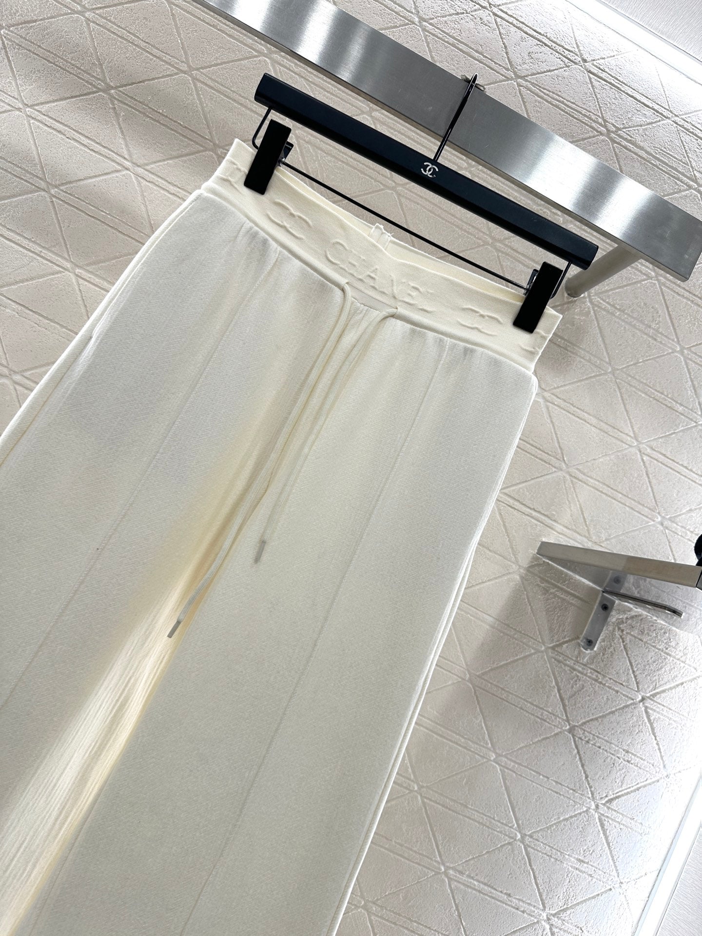 Made of wool blend material, the fabric is soft and comfortable, providing extra warmth. The high waisted drawstring wide leg pants are designed with three-dimensional cutting, making the upper body appear slimmer and the legs longer. The style is relaxed and fashionable. Paired with the iconic double C letter pattern on the elastic waistband, the concave convex three-dimensional font exudes a full appearance and instantly elevates the style, creating a high street fashion vibe. A versatile pair of pants for all seasons, suitable for vacation, dating, and daily life 💯