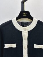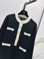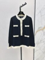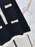 Black and white ice silk knitted long top. Special yarn black and white color decoration, classic four pocket H loose fit design, versatile and fashionable for reducing age! Swiss machine 18 needle process imported yarn with delicate and comfortable texture