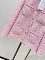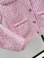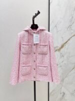Woolen woolen material with obvious texture and superior texture. The silhouette is shoulder shaped and paired with a hood ➕ Printed placket decoration combines casual details with elegant atmosphere, interwoven with silver silk weaving texture, showing a luxurious yet elegant feel. Multiple pockets are embellished with rich details, and the finished garment achieves the ultimate texture. It is the first choice for fashionable dressing in all seasons