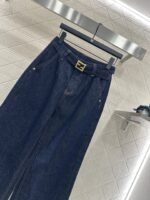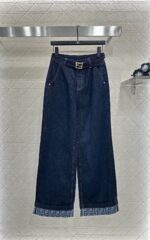 Twill cotton denim material with a crisp texture, stylish wide leg straight leg pants, full body enzyme washed uniform dyeing, retro deep blue versatile and durable, suitable for autumn casual wear, this fabric belt ➕ Folding pants legs with double F-letter pattern, three-dimensional cutting for increased capacity, more eye-catching and fashionable, echoing the letters engraved on the waist
