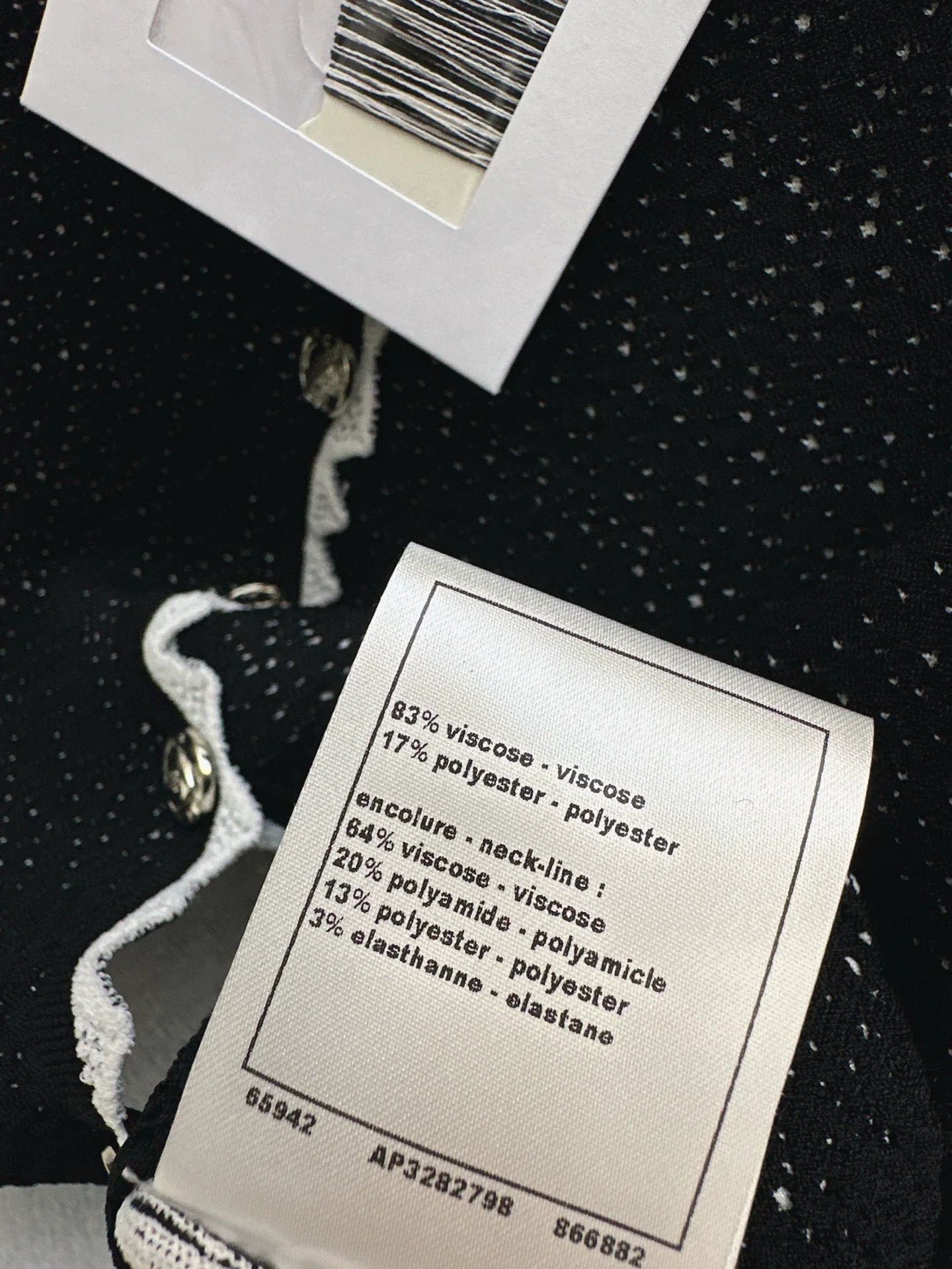 Black and white high-end color tone imported machine woven hollow yarn elements with different patterns of buttons embellished with exquisite and cute white, rich and beautiful must be divine artifact~French court style temperament can be sweet or salty, classic version with a huge slimming effect on the upper body