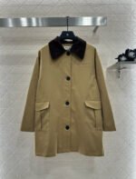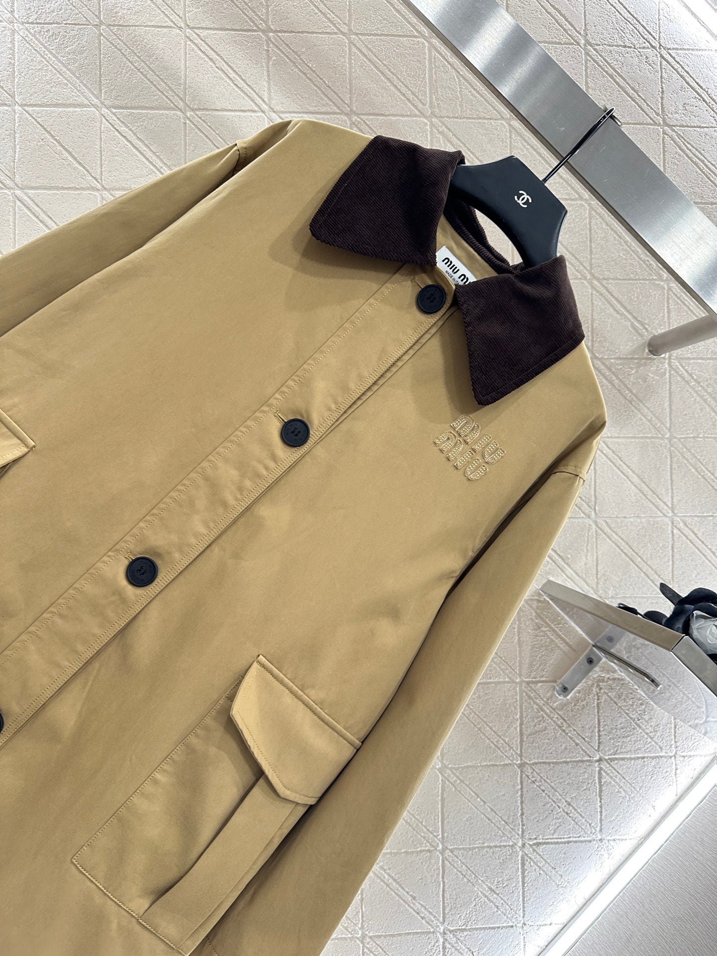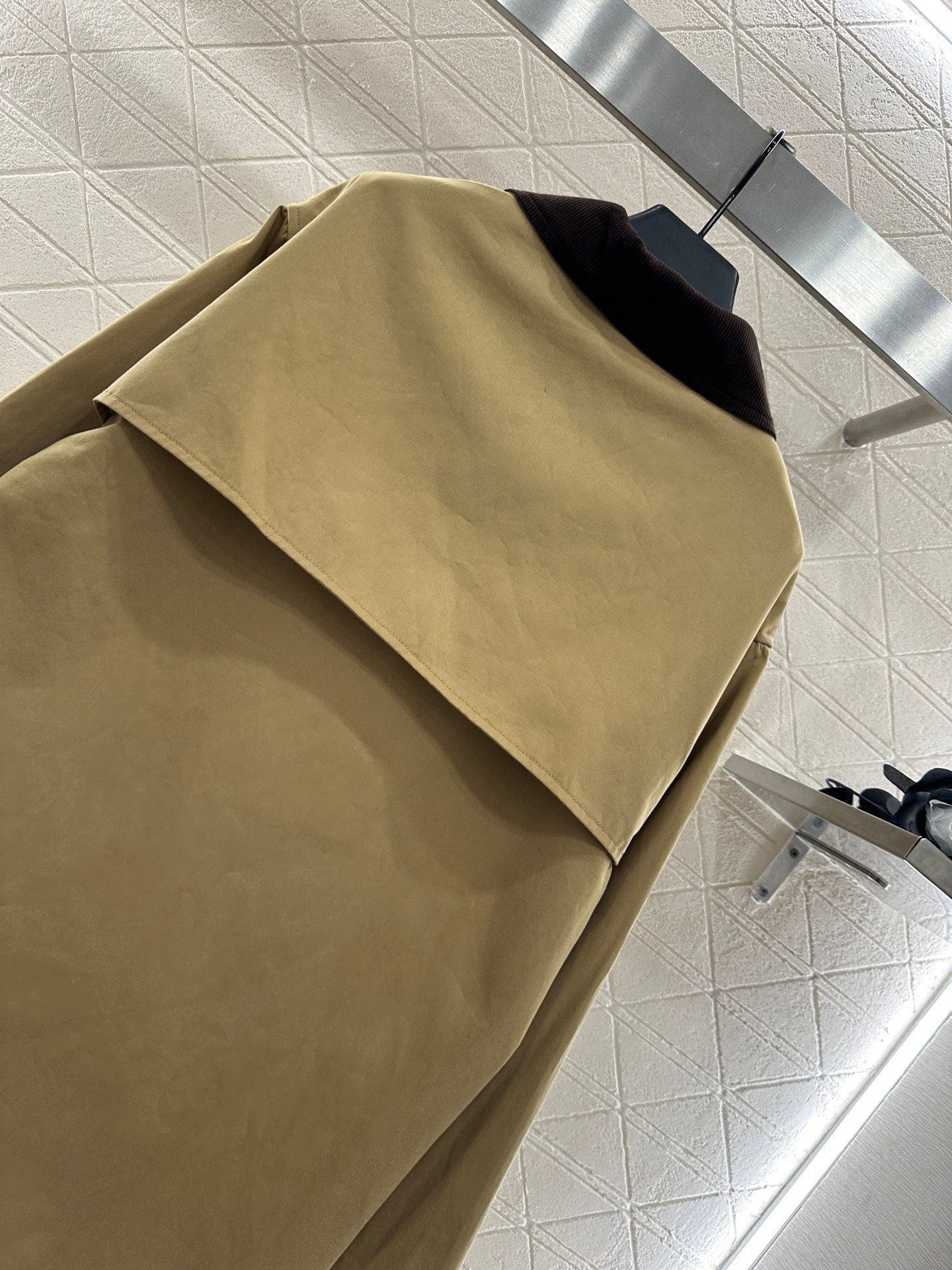 Twill cotton material processing, crisp and stylish texture, high-end lapel, mid length windbreaker jacket, shoulder drop, micro A-line design to create a relaxed and casual style, khaki face, large body ➕ The dark corduroy collar creates a collision and exudes the temperament style of the Korean drama female lead. The flip cover pocket and large capacity pocket make the outfit more neat and agile. The letter logo highlights the taste