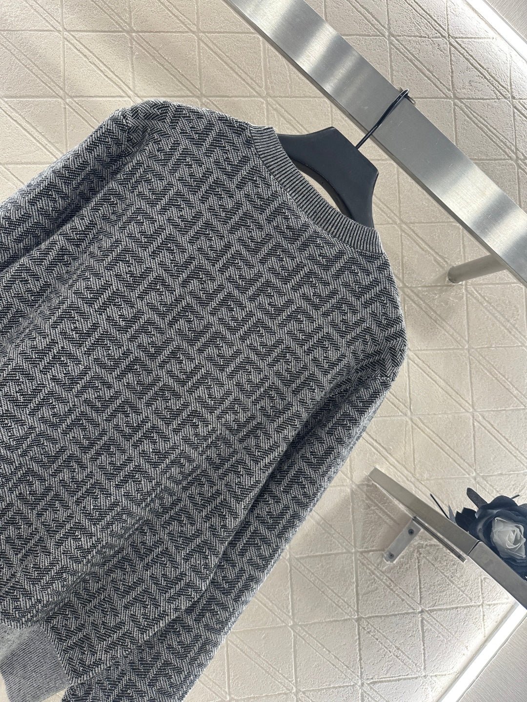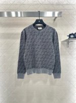 Weaved with silk and wool yarn, the texture is high-end and comfortable. The pullover top is cut and decorated with the iconic double F-letter pattern throughout the body, creating a collision of colors to showcase the brand’s personality and the high-end sense of wearing. The collar is wrapped with contrasting colors, allowing simple styles to be worn with exquisite personality and a relaxed tone, showing a light luxury and fashionable temperament. It can be worn alone or in layers, and is the first choice for autumn and winter fashion.
