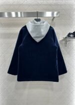 Custom YB imported corduroy + nylon material, crafted with a crisp and stylish design and high-quality texture. The mid-length jacket with snap button opening and hood is made of light gray sweatshirt fabric, creating a collision of styles. The dropped shoulder design creates a relaxed and casual style. The diamond embossed lining and down cotton filling ensure warmth while making the outfit more neat and fashionable. It is a must-have item that combines fashion and practicality. It is suitable for daily layering. With the Arc de Triomphe logo on the chest, it has a charming British elegance.