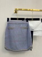 Exquisite woven lace decoration, embellished with double C diamond buckles, fashionable and elegant. High waisted A-line skirt shape, slimming and elegant. Suitable for wearing in spring and autumn seasons
