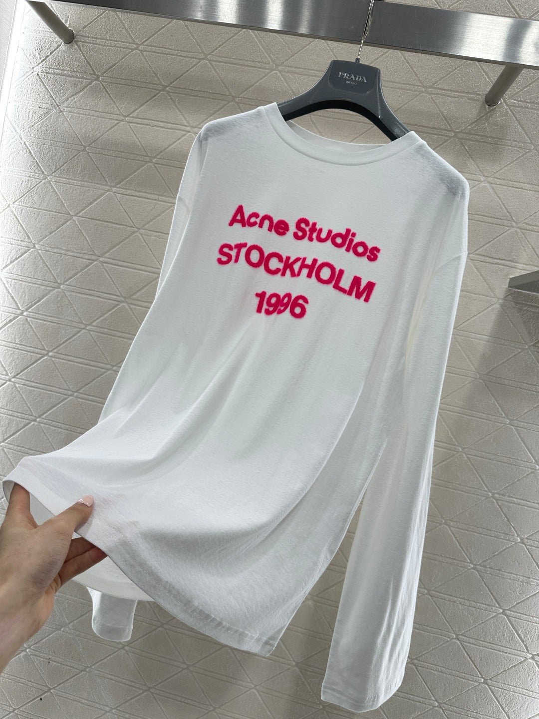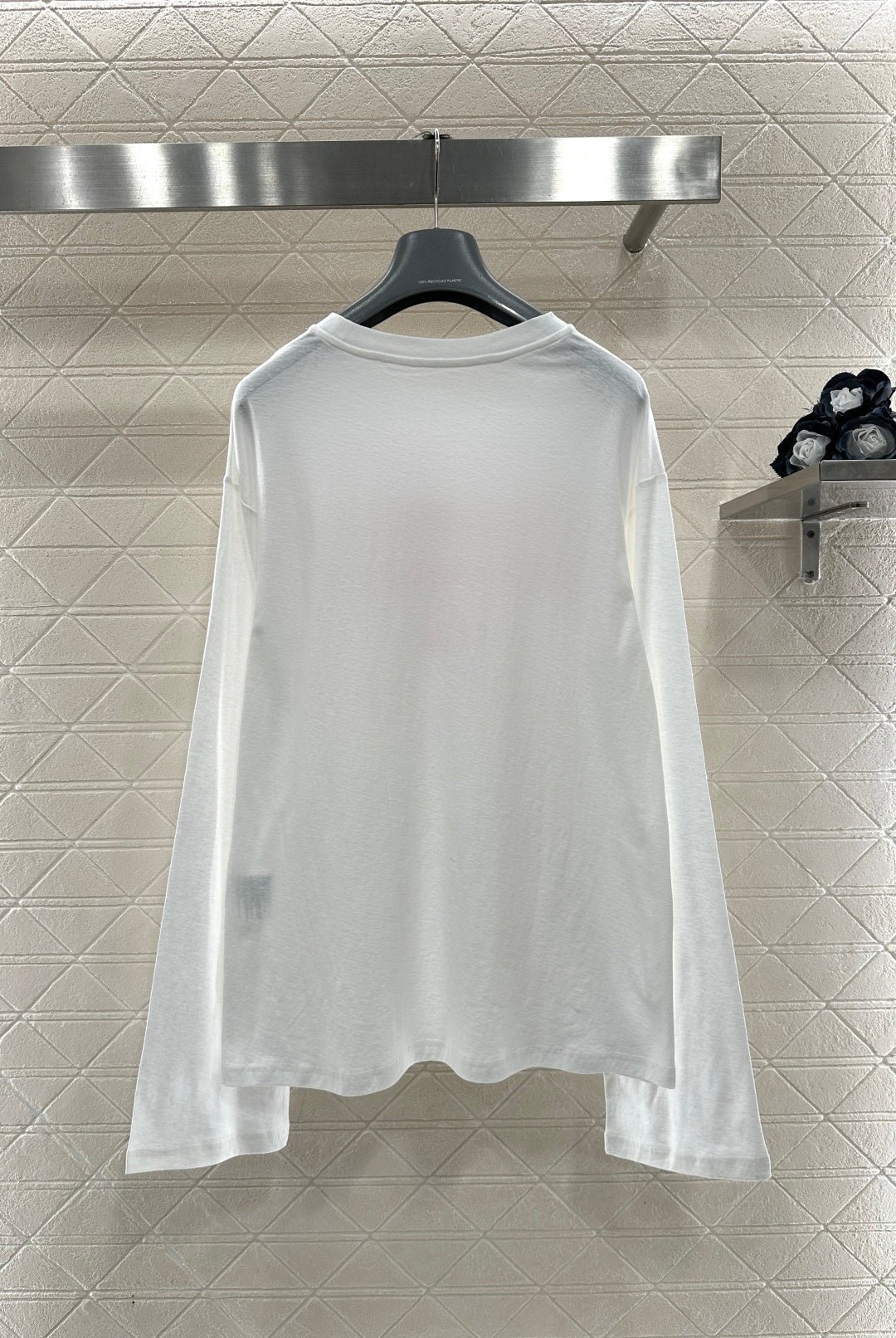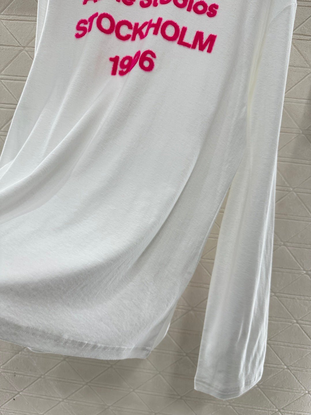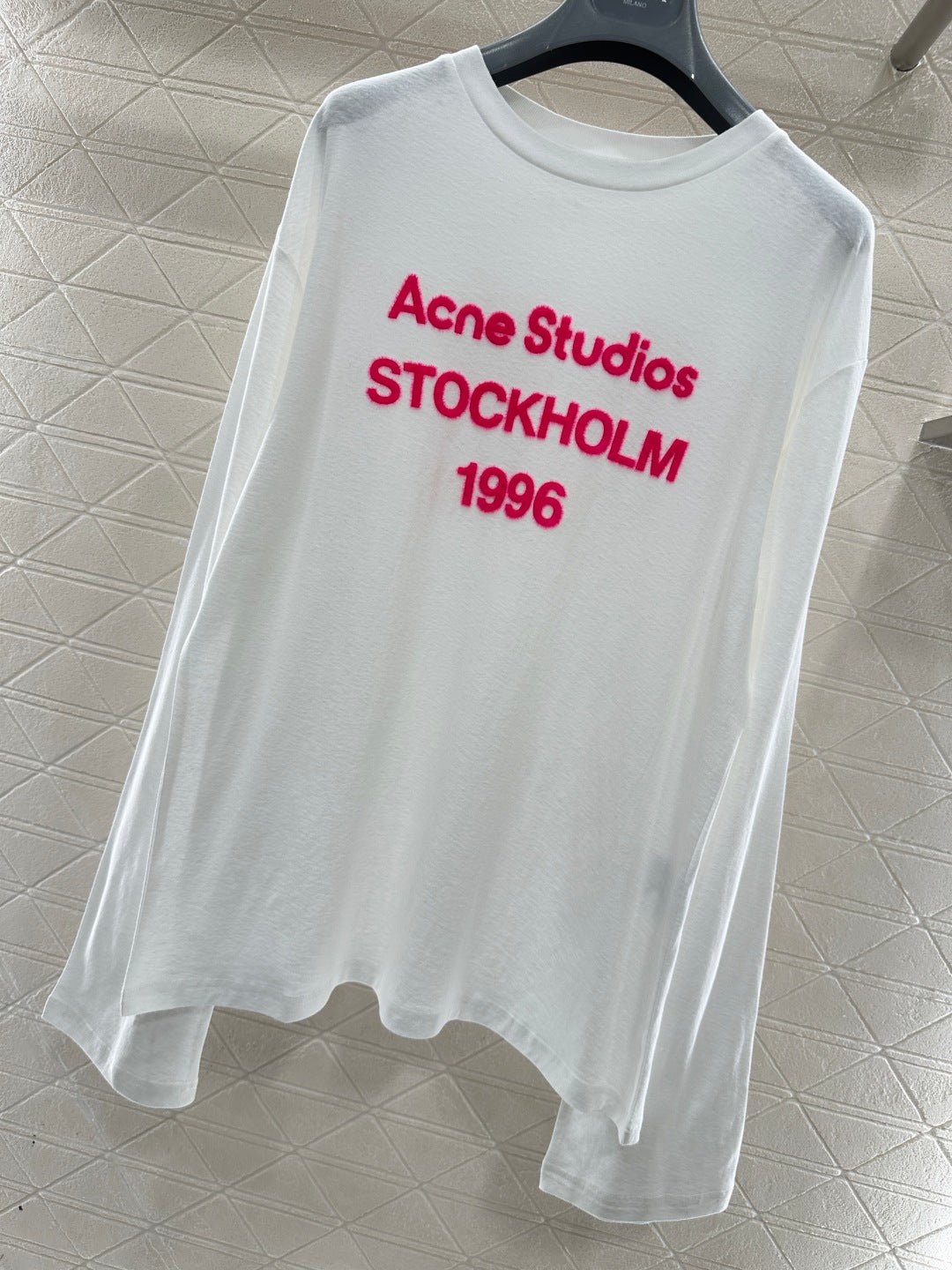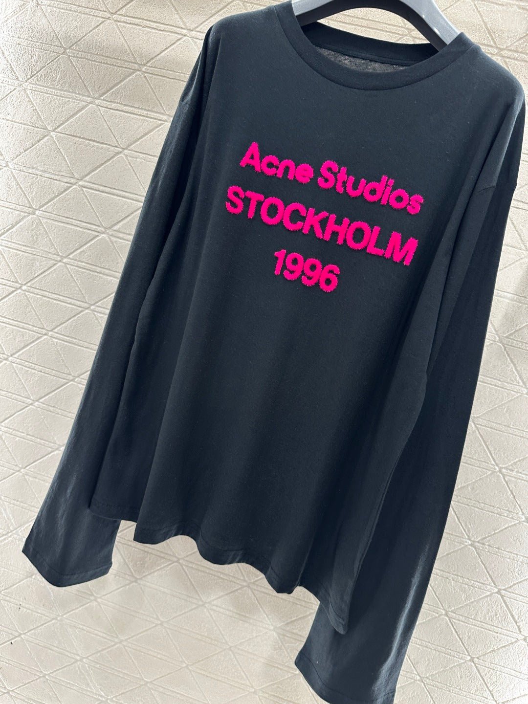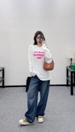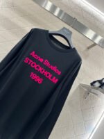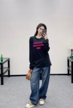 Crafted from breathable linen-cotton blend for comfort and rich texture, this relaxed-fit long-sleeve top features a flocked process that creates a three-dimensional lettering logo. The fluffy rose pink hue stands out vividly, adding warmth and texture while enhancing brand recognition. The relaxed fit flatters figures with effortless ease, while the soft, plush fabric feels gentle against the skin and breathes well. Wear it alone or layered to achieve a laid-back yet distinctive look—a true everyday streetwear staple.