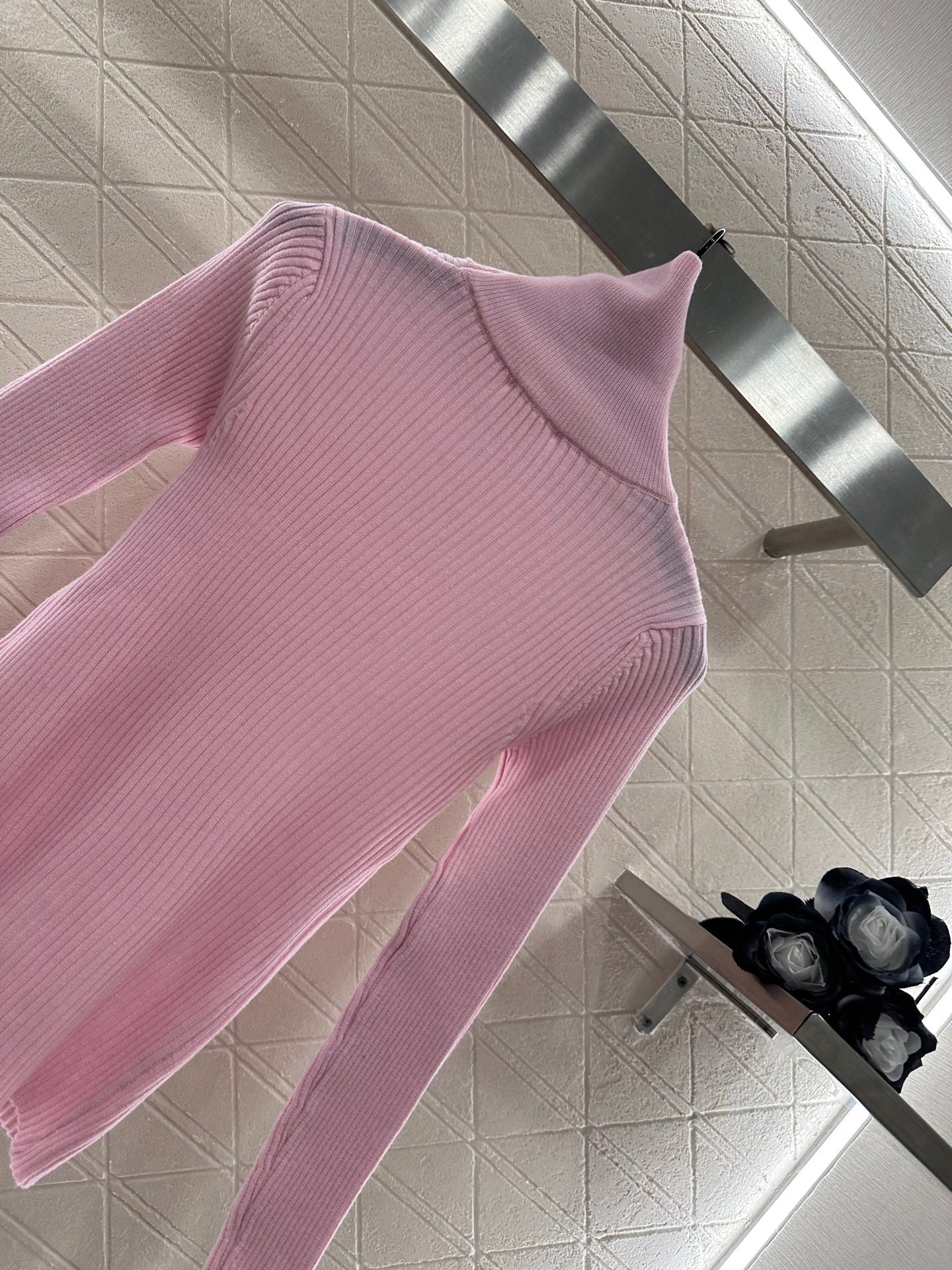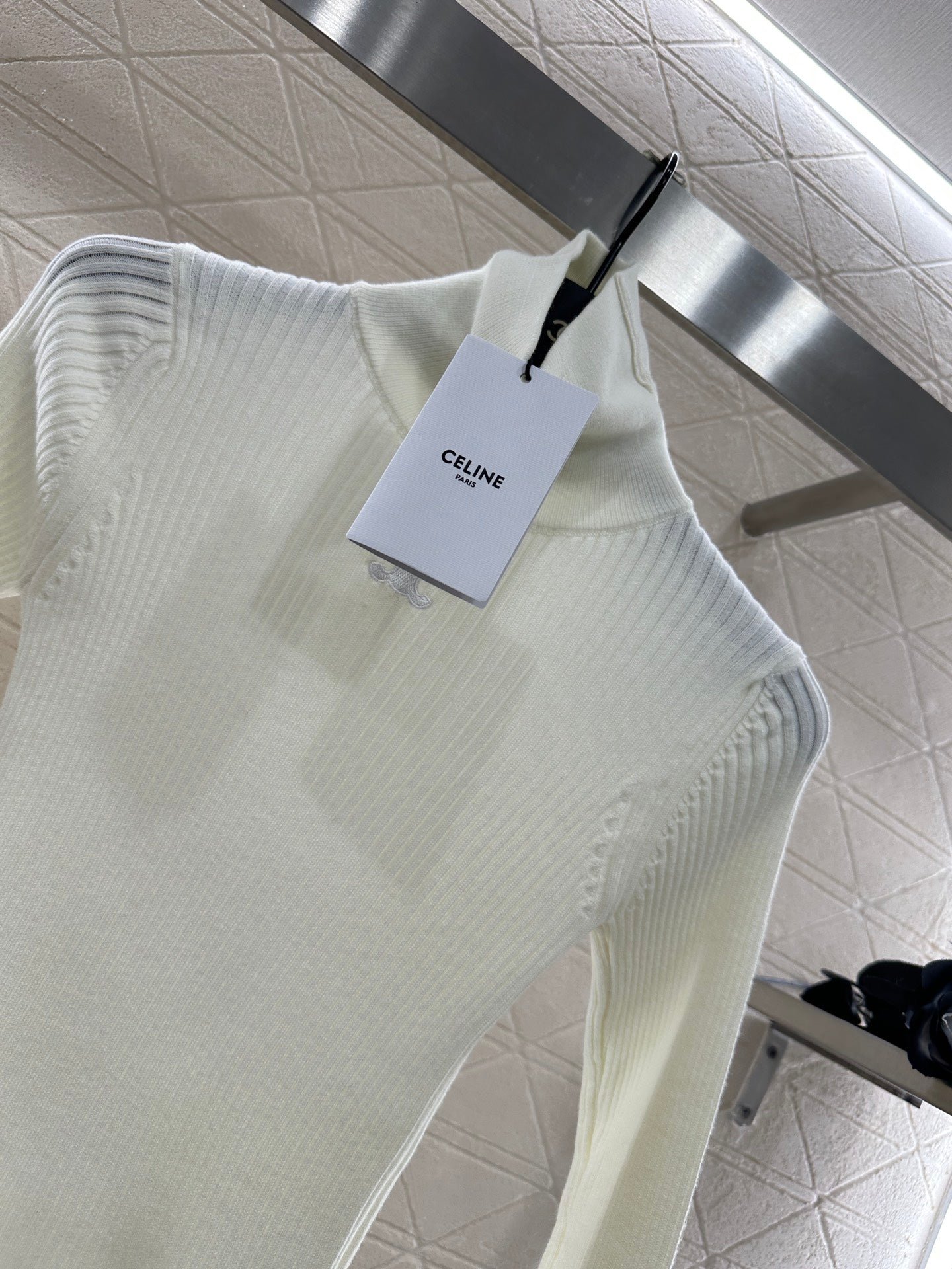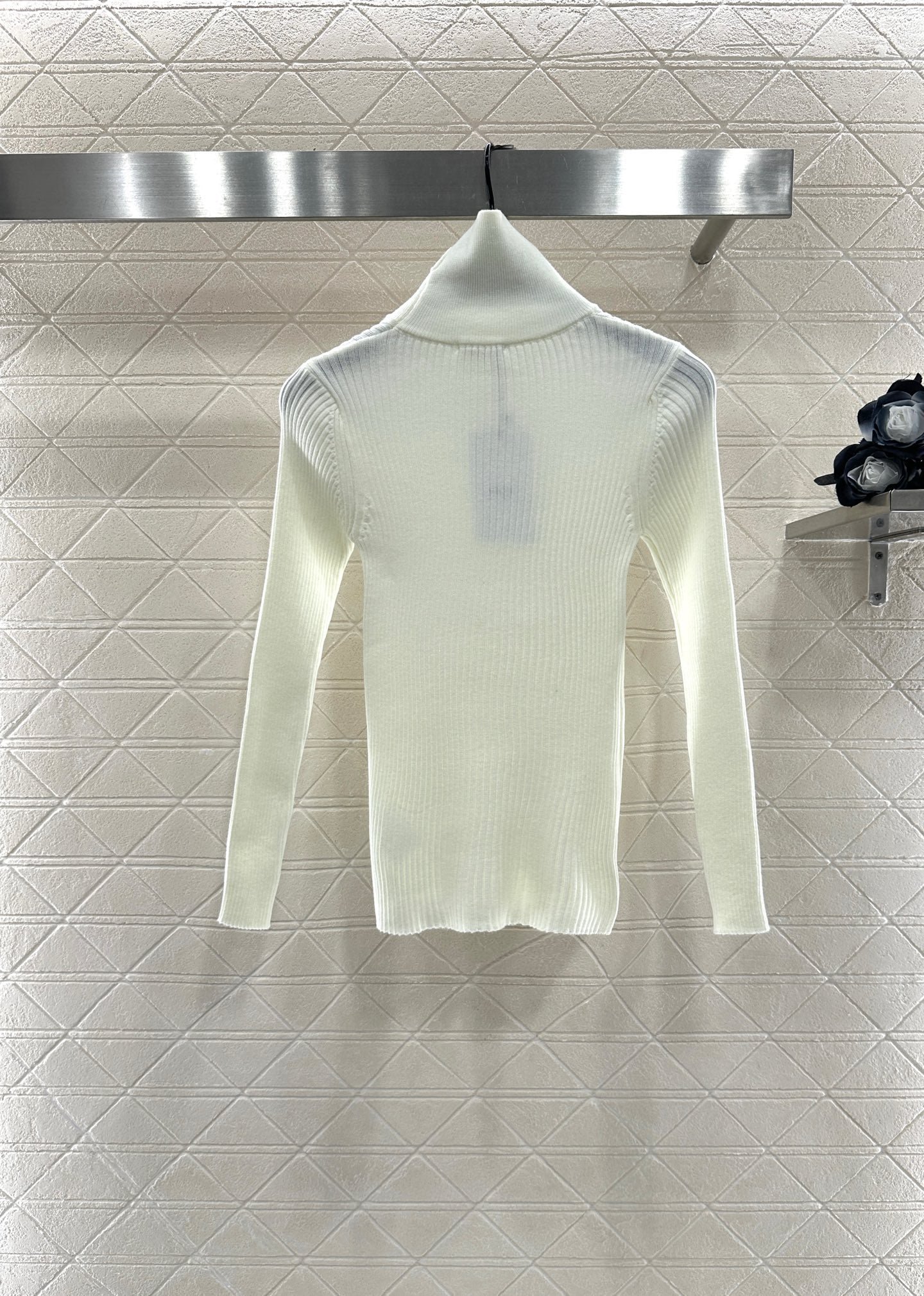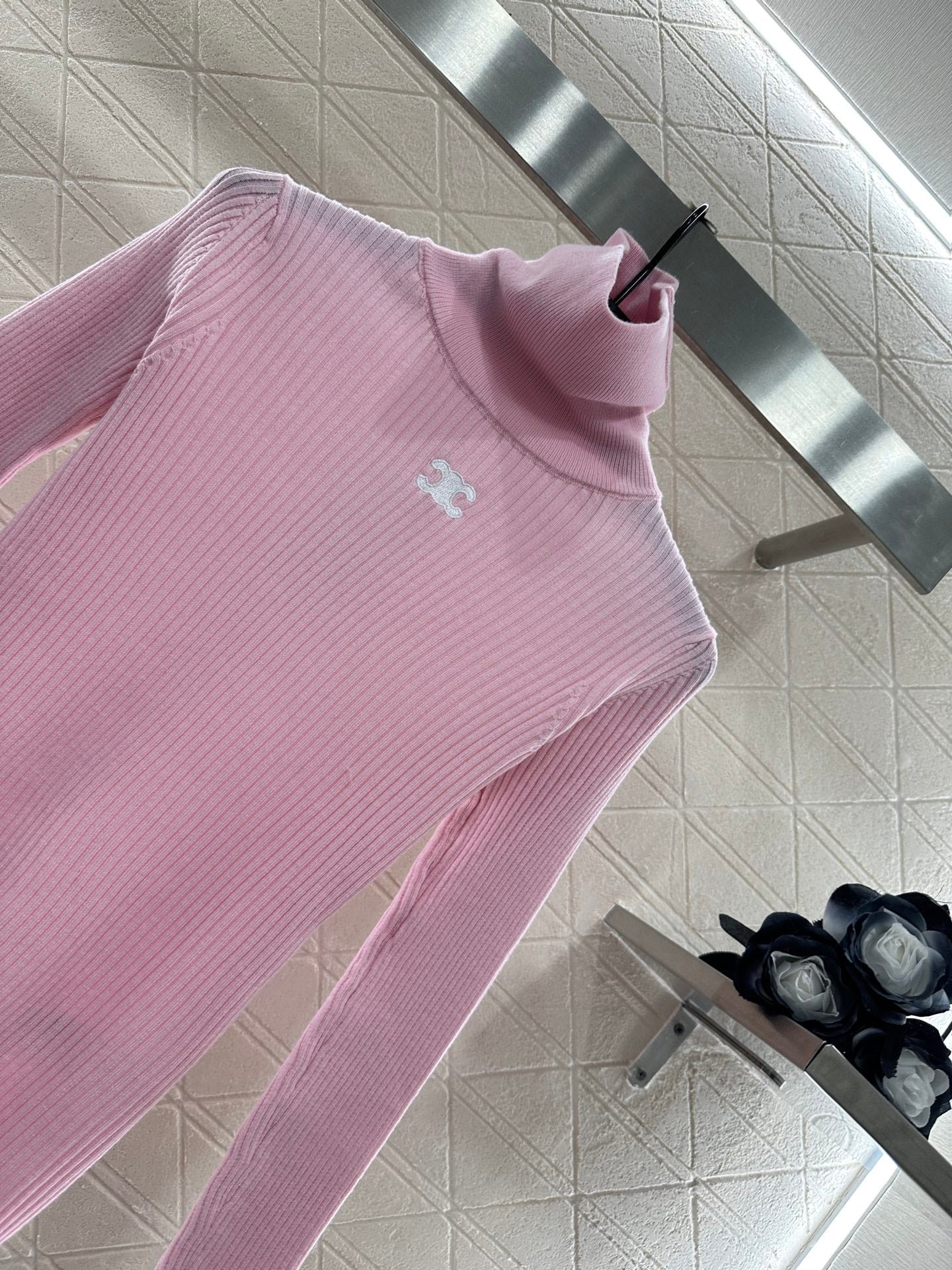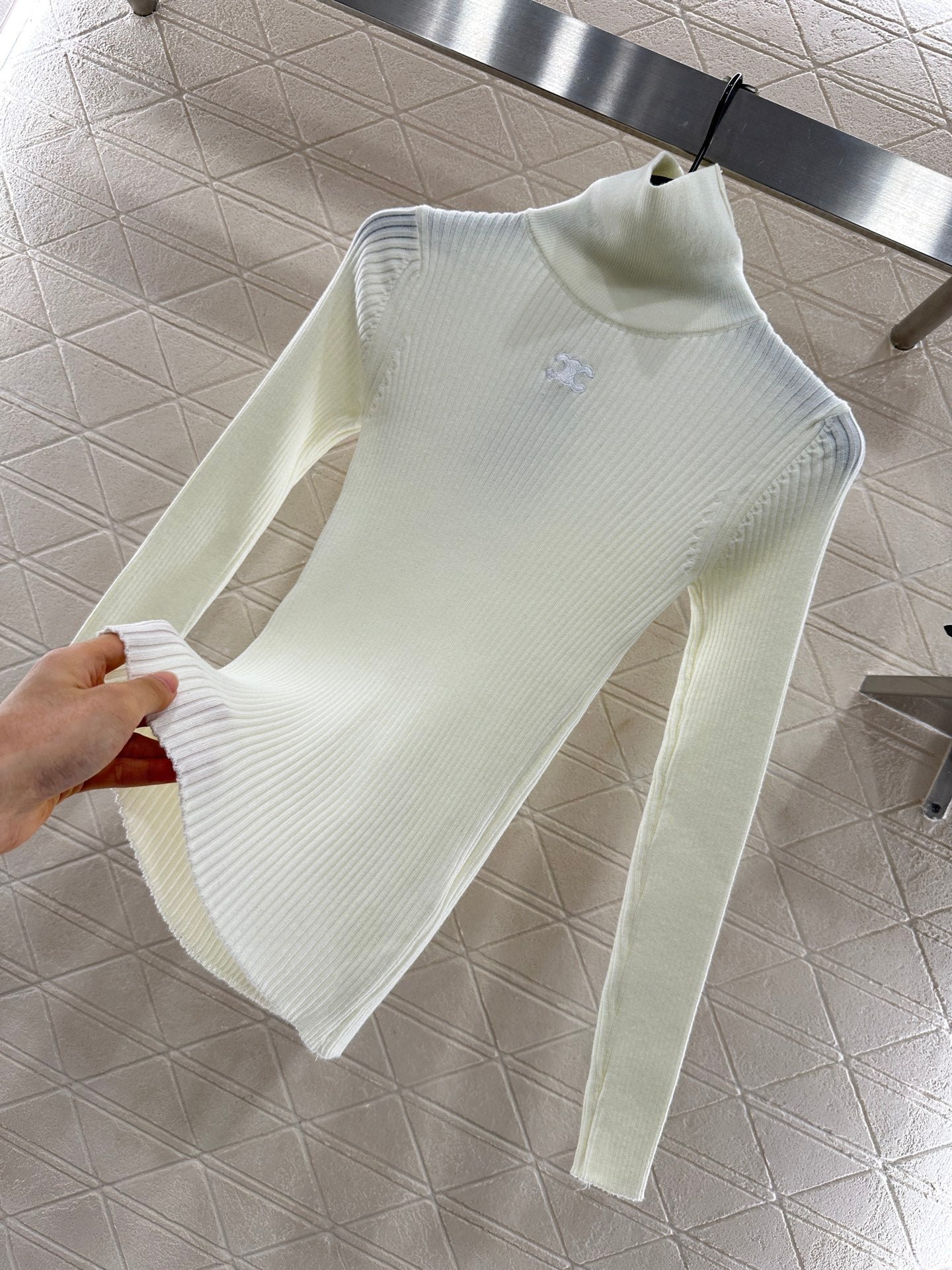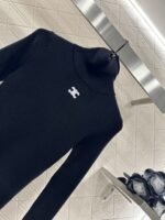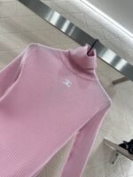 The wool yarn material has a comfortable texture and strong elasticity, making it a slim fit with a high neck as the base cut. The center of the chest is sewn with the Arc de Triomphe logo, highlighting the brand style. The pit bar is arranged vertically, visually elongated, and has a strong elastic fit, presenting a slimming visual effect. It is fashionable and eye-catching when worn alone or on the inside