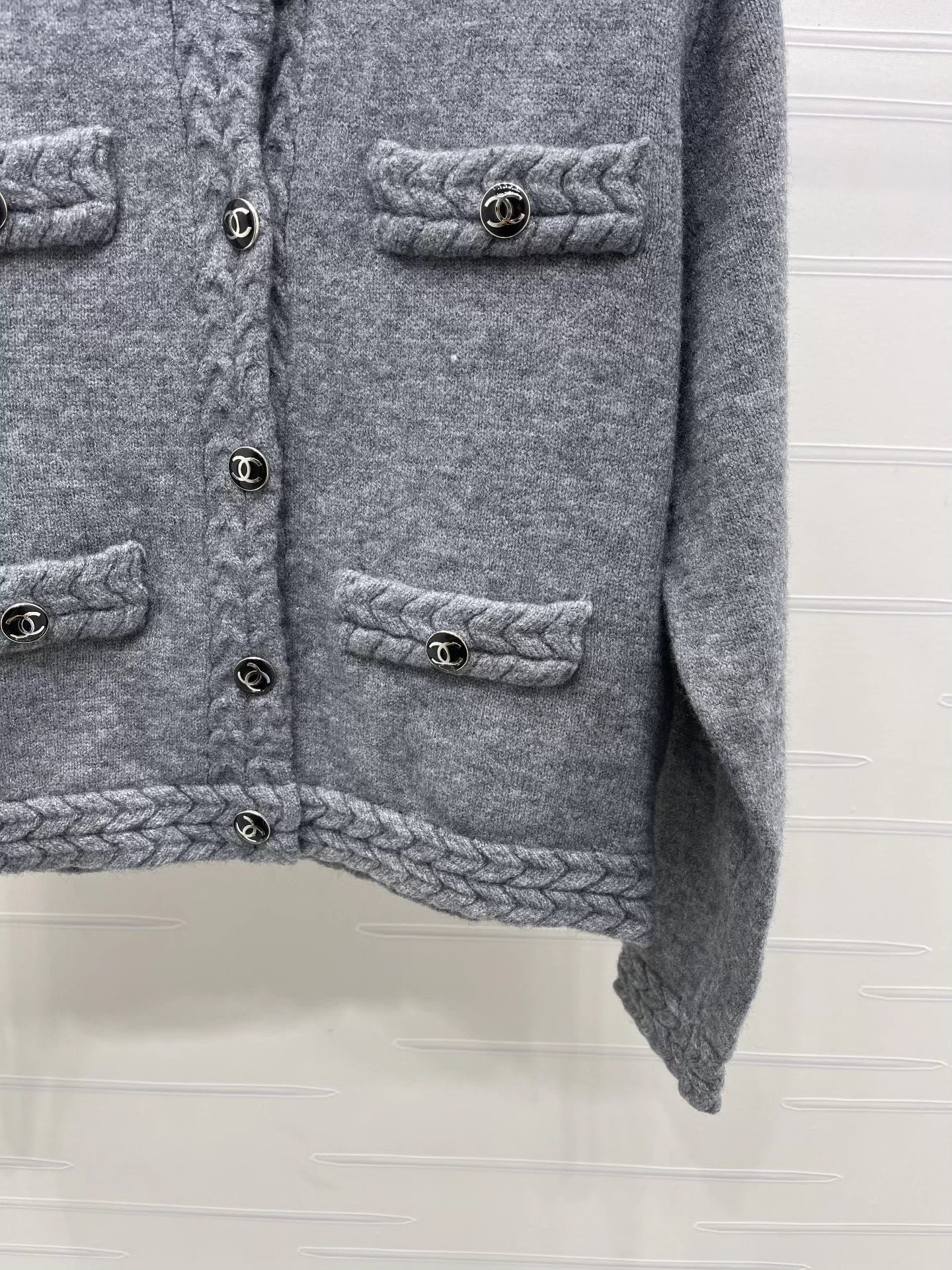 Made from a wool blend yarn, this high-quality cardigan is soft, comfortable, and features a cable knit texture. The solid color design includes custom-engraved buttons. The cropped style is flattering and versatile for everyday wear.