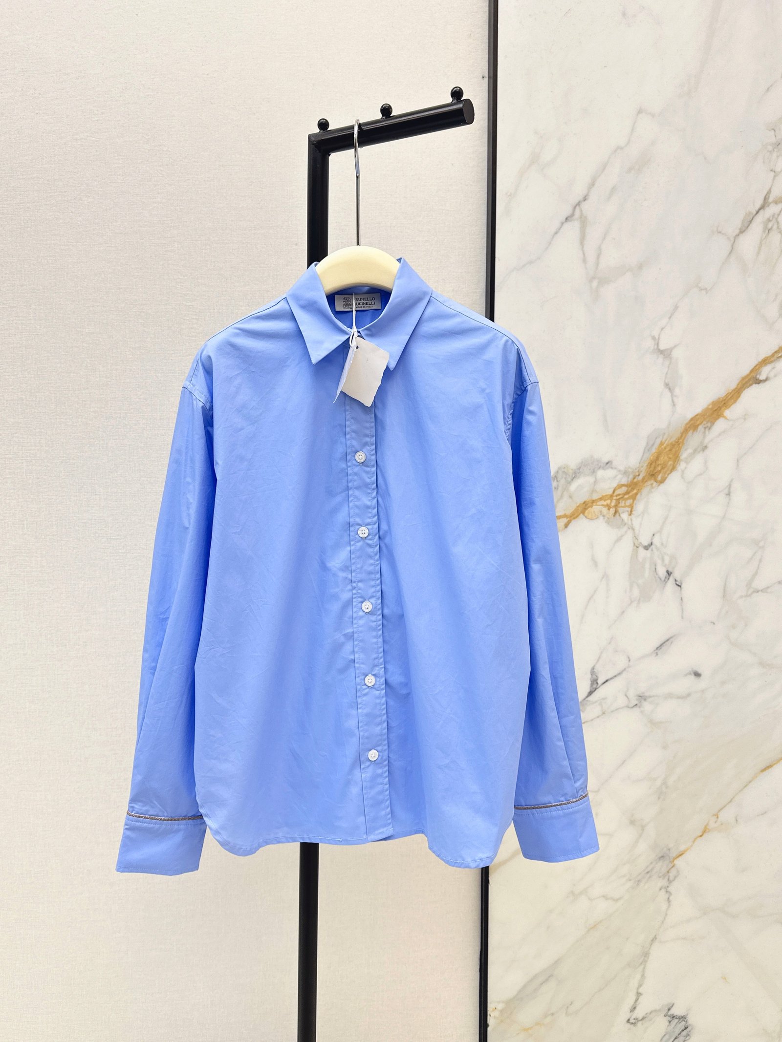 A versatile must-have. Features a simple yet understated Italian style with copper chain embellishments on the cuffs. A classic cut that suits all body types. A stylish and casual wardrobe essential for both casual and professional occasions.