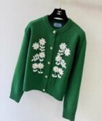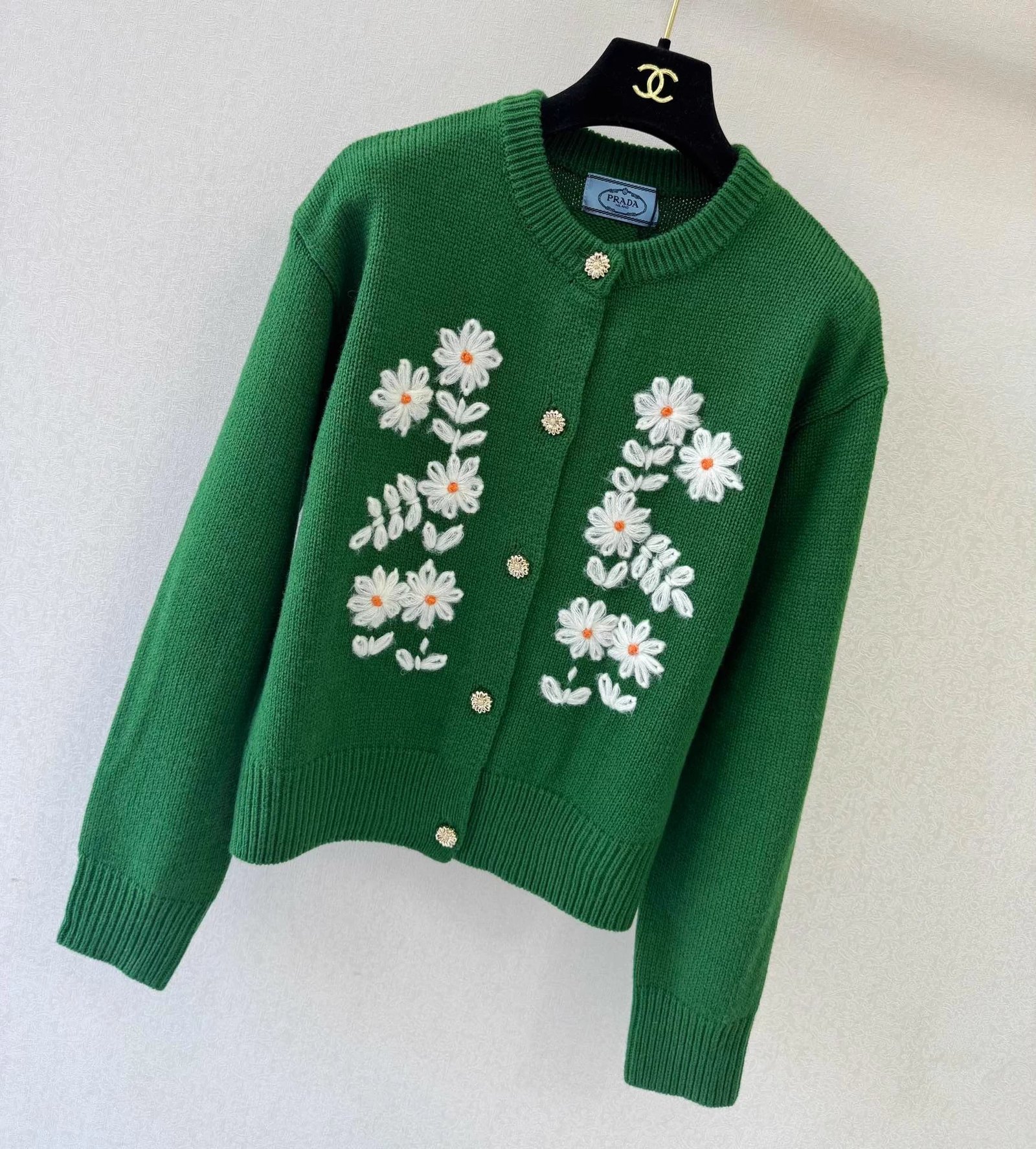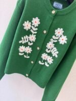 Made of 100% cashmere, soft and comfortable, perfect for autumn and winter, and a versatile piece that exudes elegance. Features hand-crocheted flower design and gold button embellishments, showcasing impeccable attention to detail.