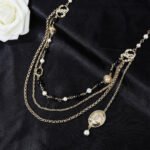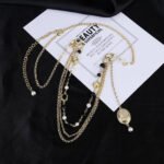 Gold chain+pearl+black pearl embellishment multi-layer design full of high-end feeling