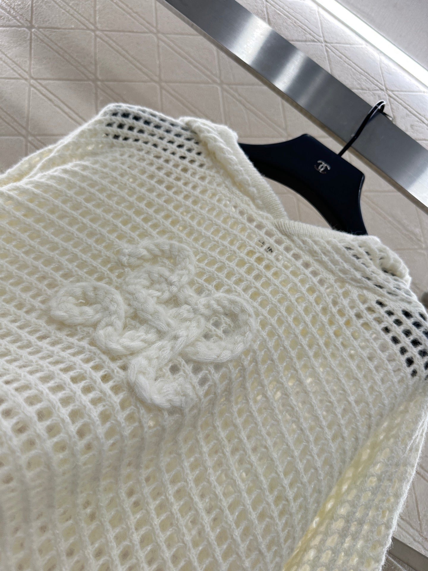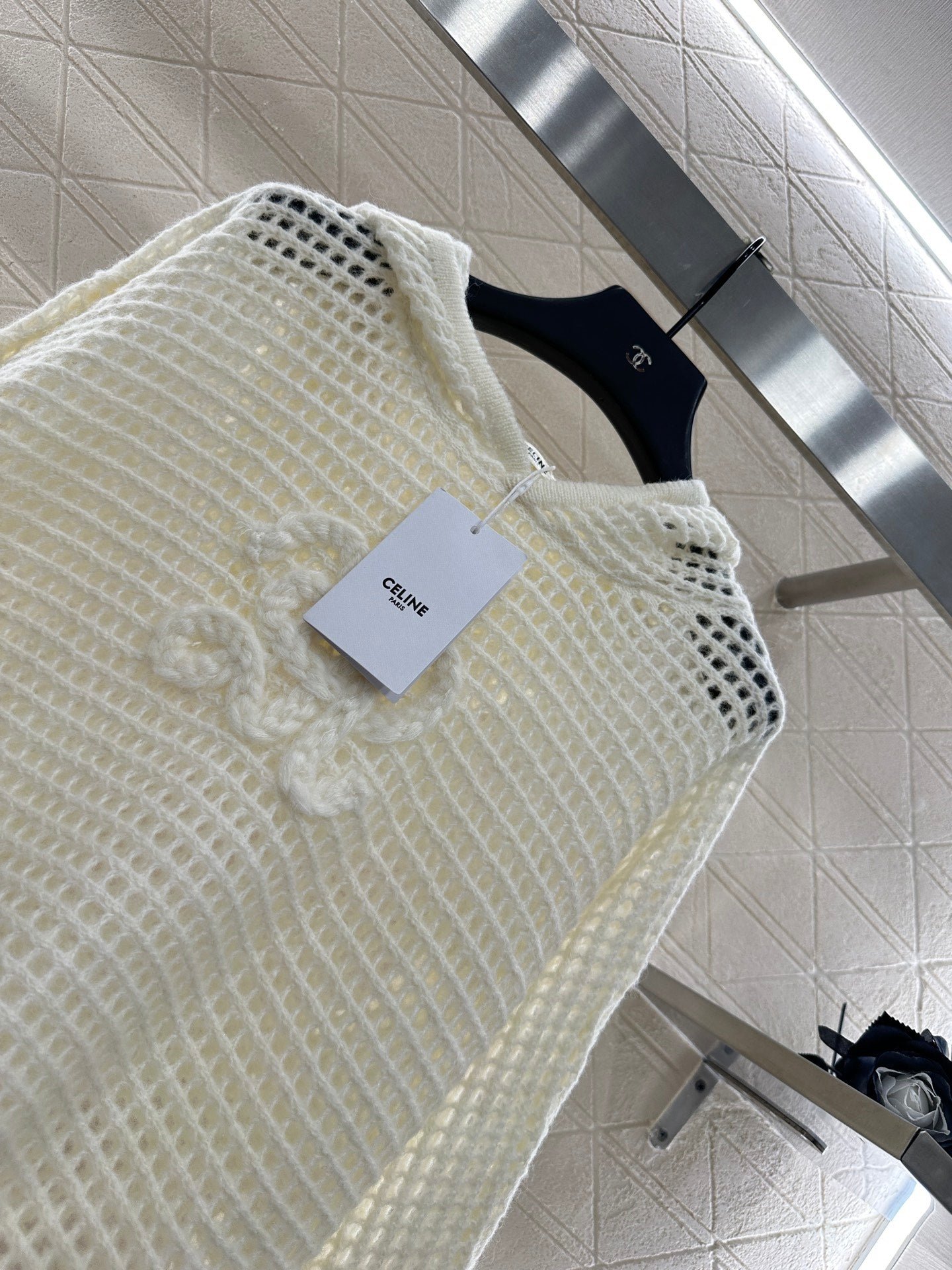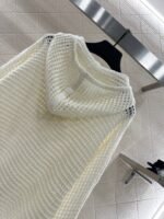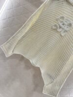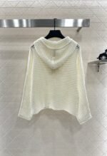 Woolen yarn weaving texture for high-end wearing, loose knit hooded long sleeved top, cut with three-dimensional Arc de Triomphe logo on the chest to highlight the style. The whole body uses grid hollow texture interweaving design with fine flat needle edging design to highlight the sense of high-end wearing. The loose silhouette cover shirt style is more suitable for seasonal dressing