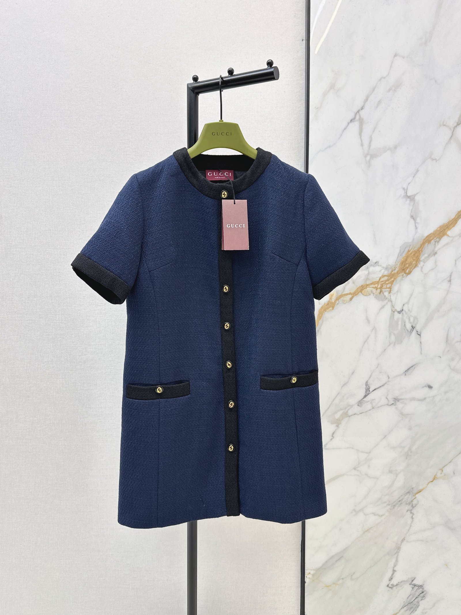 The classic design beautifully accentuates the neckline, instantly elevating your overall look. Custom-made buttons add a stunning touch. The color is incredibly flattering and makes your skin appear brighter.