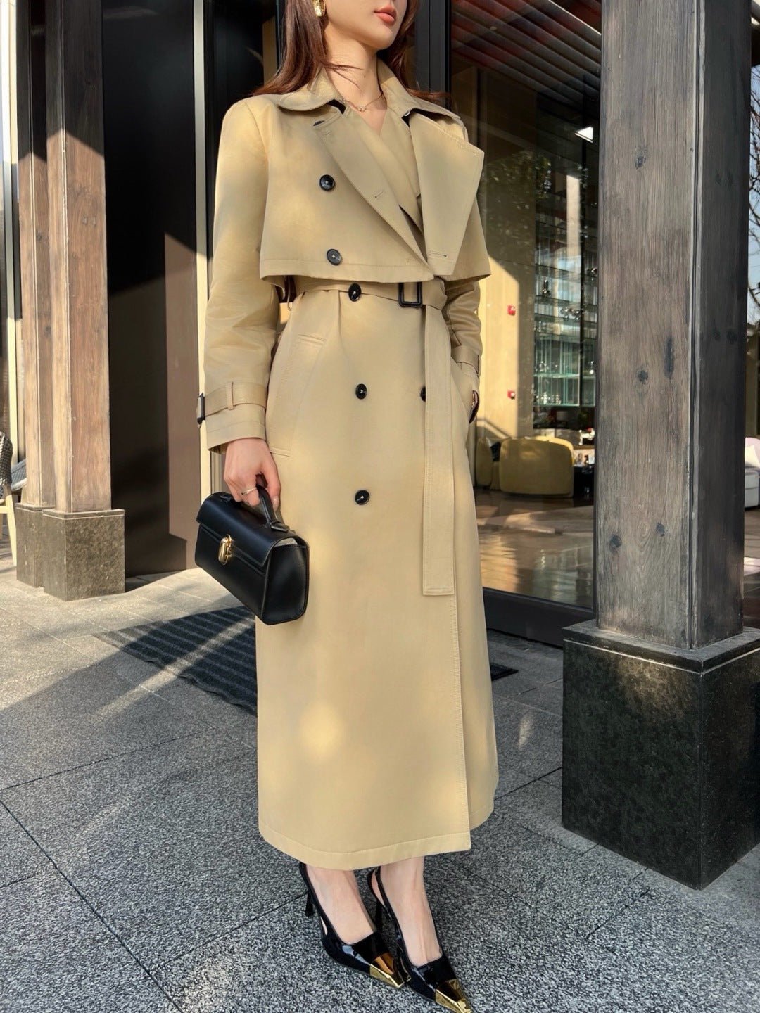 This early spring’s must-have item is the trench coat—stylish, chic, elegant, and sophisticated. It accentuates the shoulders and visually elongates the figure. The simple double-breasted design is understated yet exudes understated elegance. The detachable two-piece set allows for separate styling.