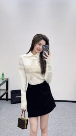 Cashmere yarn weaving texture is high-end, comfortable, soft, with a lapel and long sleeved sweater. The cut is dense, knitted, and matched with pit details for better insulation and wind resistance. The cuffs are wide, threaded, and the edging matches the hem. The chest crossbar is decorated with letter hooks and flowers ➕ The five pointed star pattern decoration highlights the brand’s tone. The shoulder style is a regular version