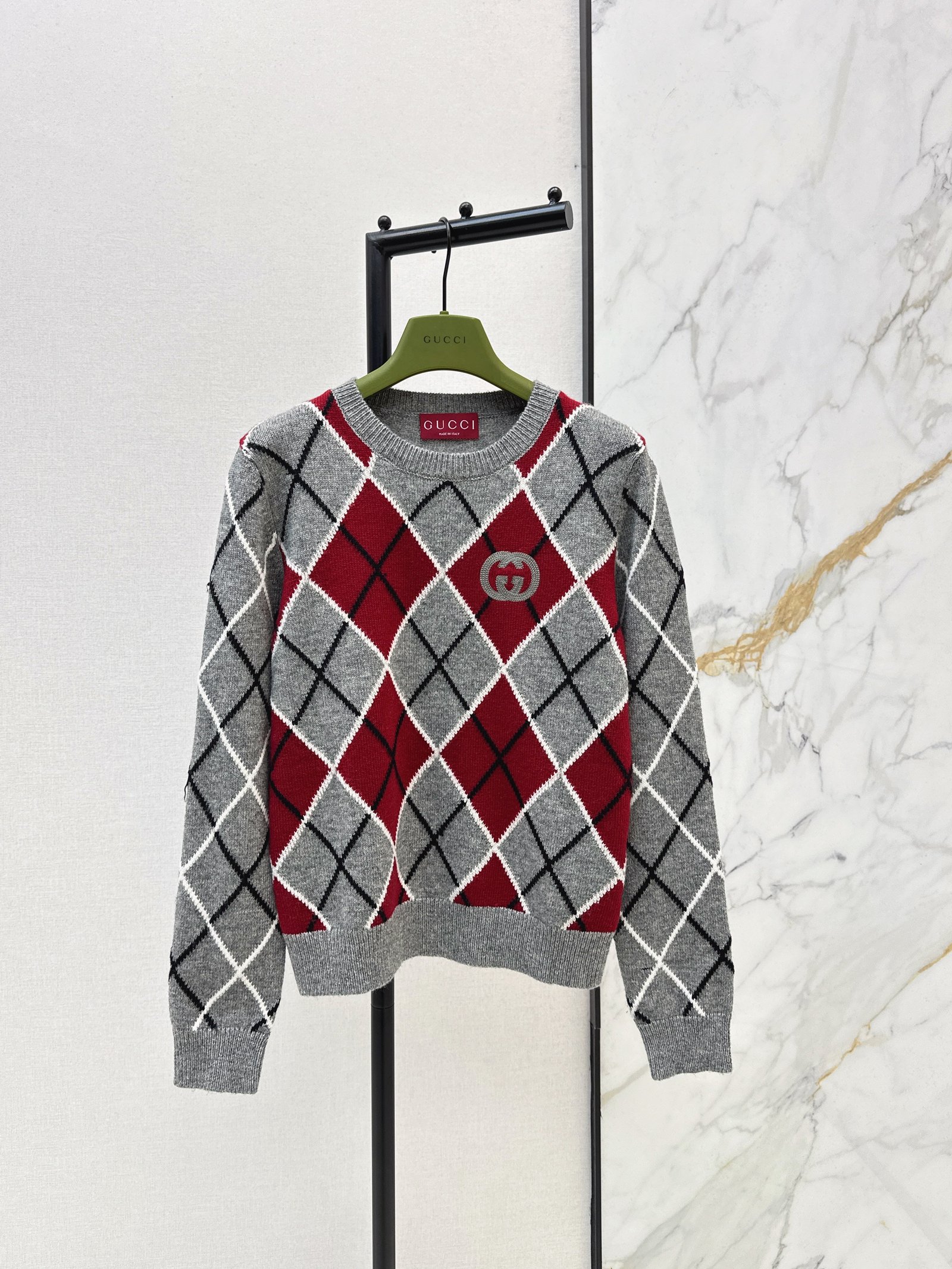 The soft, cozy wool blend fabric offers a relaxed and warm feel. The double G logo on the chest adds a touch of understated elegance. The pullover style is versatile and easy to match with any outfit, whether layered under a shirt or worn alone, it exudes a retro yet sophisticated vibe for everyday wear.