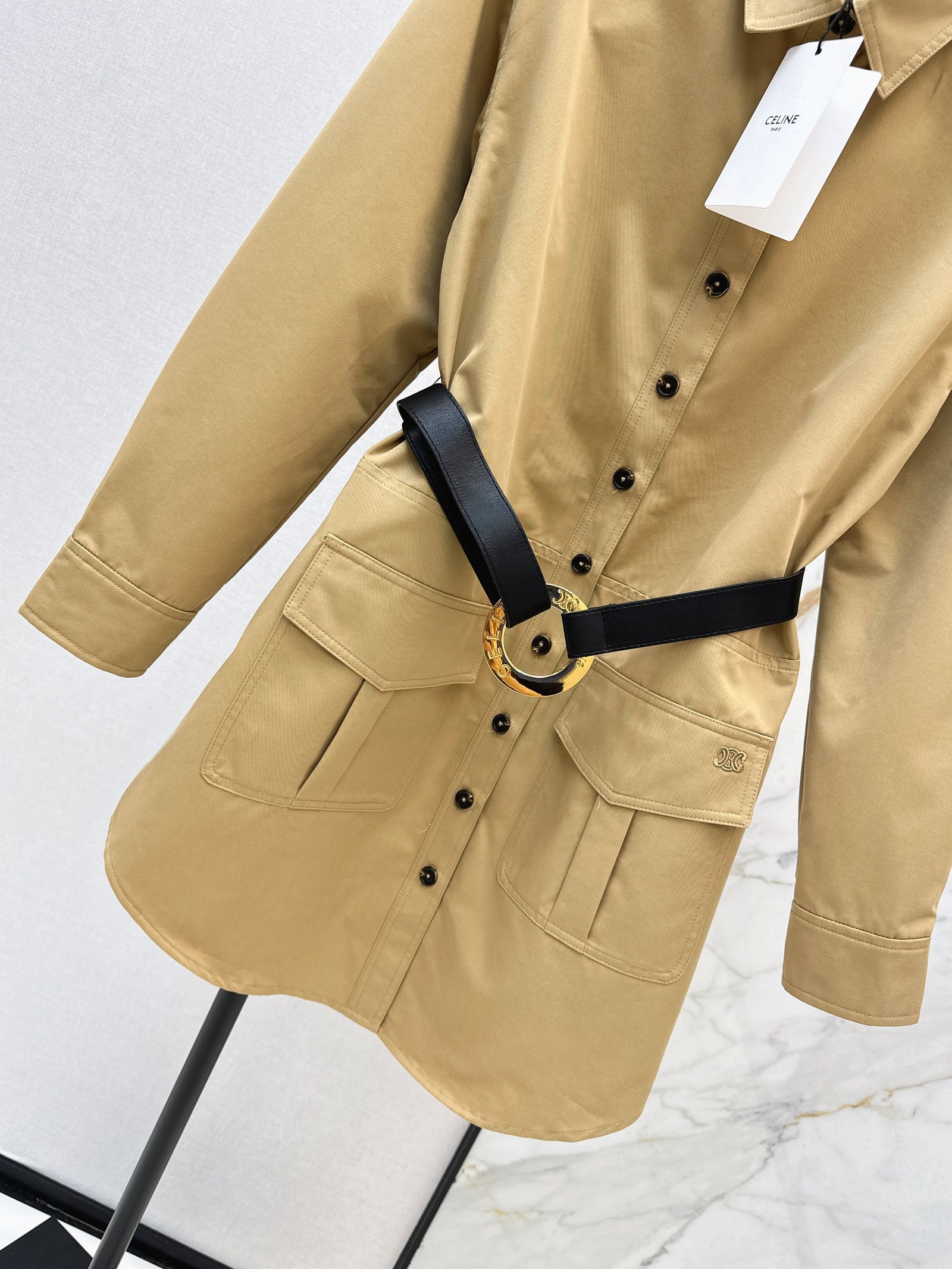 The chic and stylish khaki color, paired with a custom logo circle belt, creates a fresh visual effect, exuding vitality and youthful energy. The straight cut is flattering for all body types, even petite women can wear it with confidence.